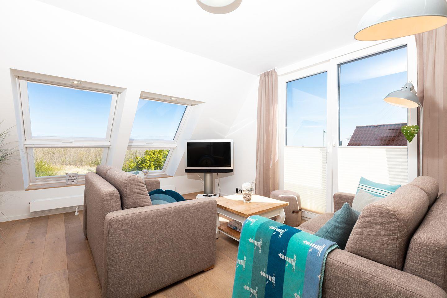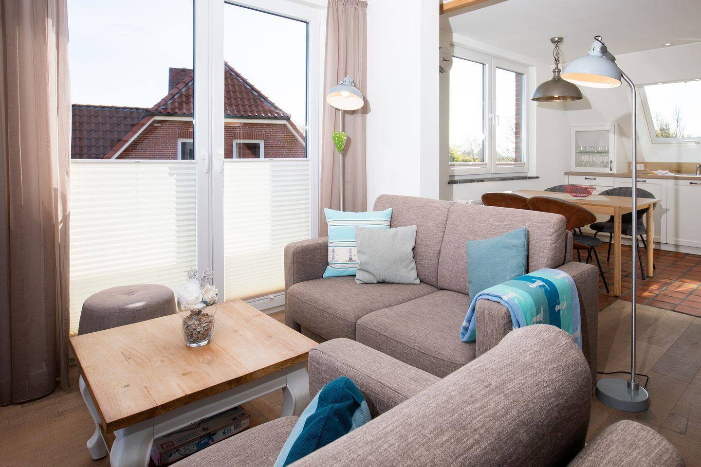 Gemütliche Ferienwohnung Teetied auf Juist mit Balkon, Gartenblick und moderner Ausstattung für bis zu 4 Personen.