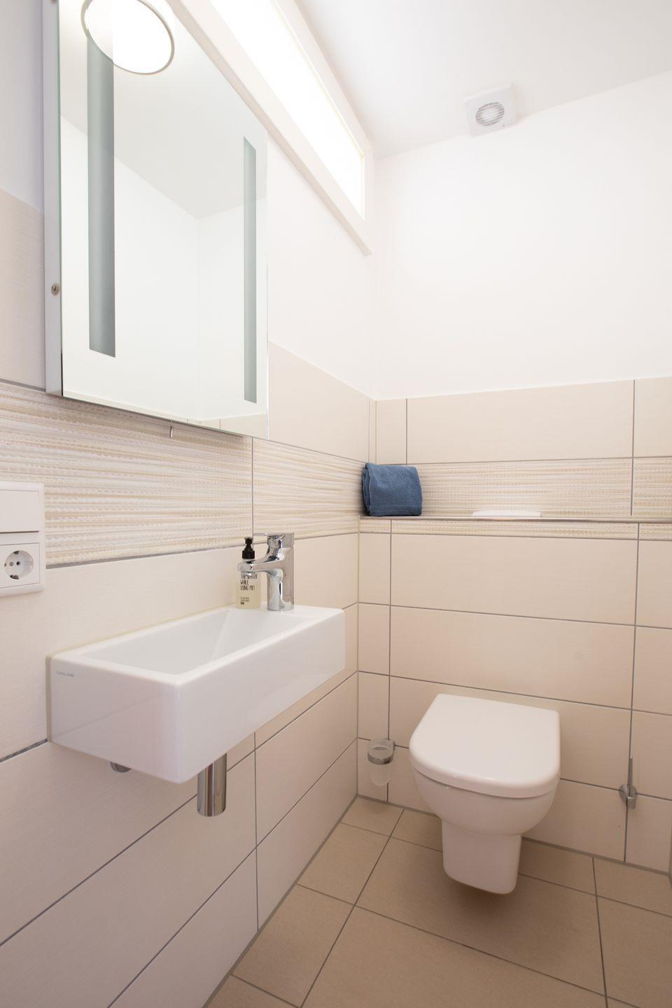 Neben dem Bad, welches mit einer Dusche ausgestattet ist, befindet sich ein zusätzliches Gäste-WC. Grundsätzlich sind ein Fön, sowie Handtücher/Duschtücher vorhanden.