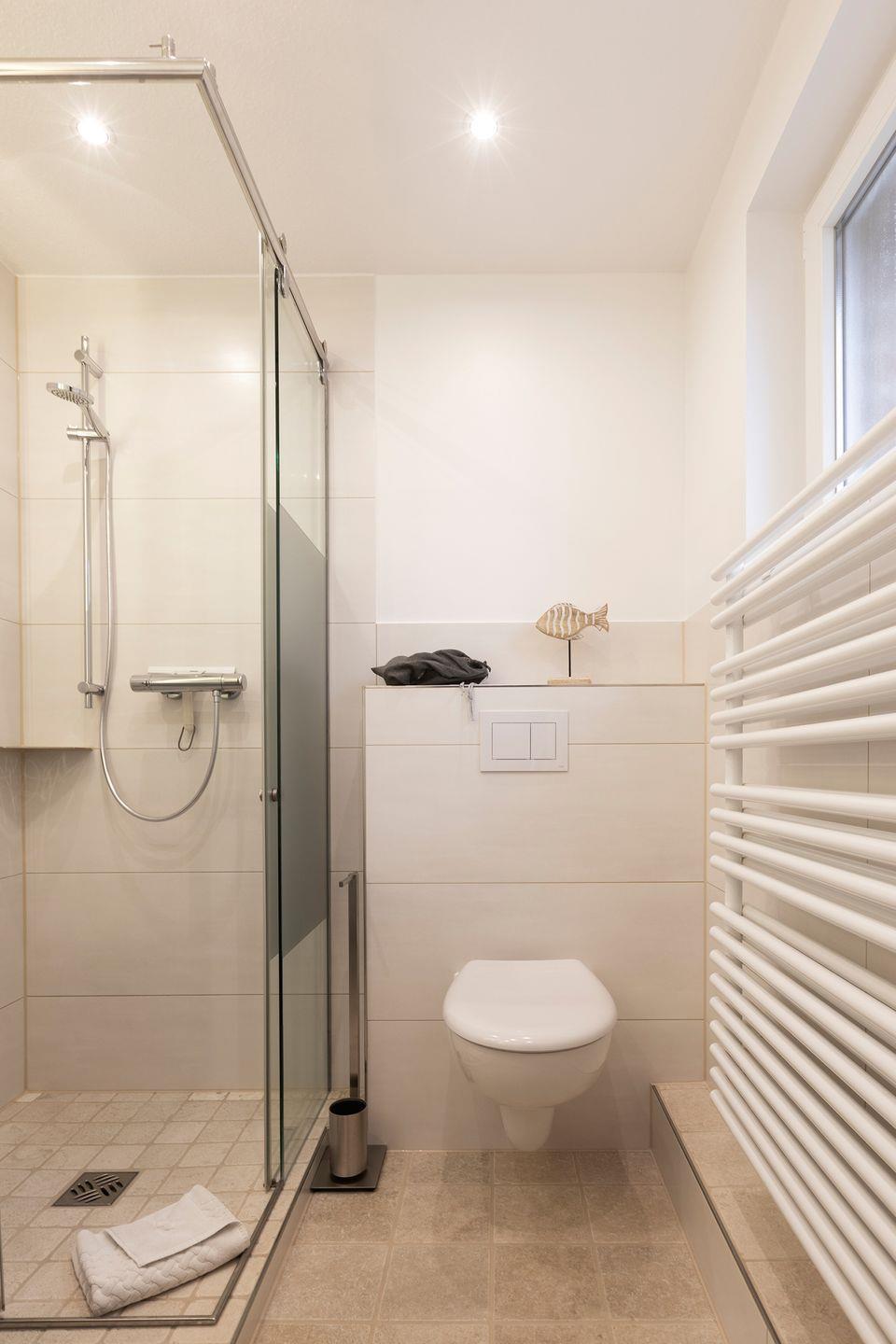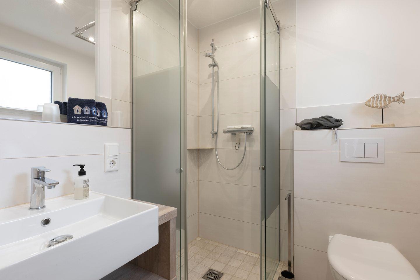 Das Bad ist mit einer Dusche ausgestattet. Grundsätzlich sind ein Fön, sowie Handtücher/Duschtücher vorhanden.