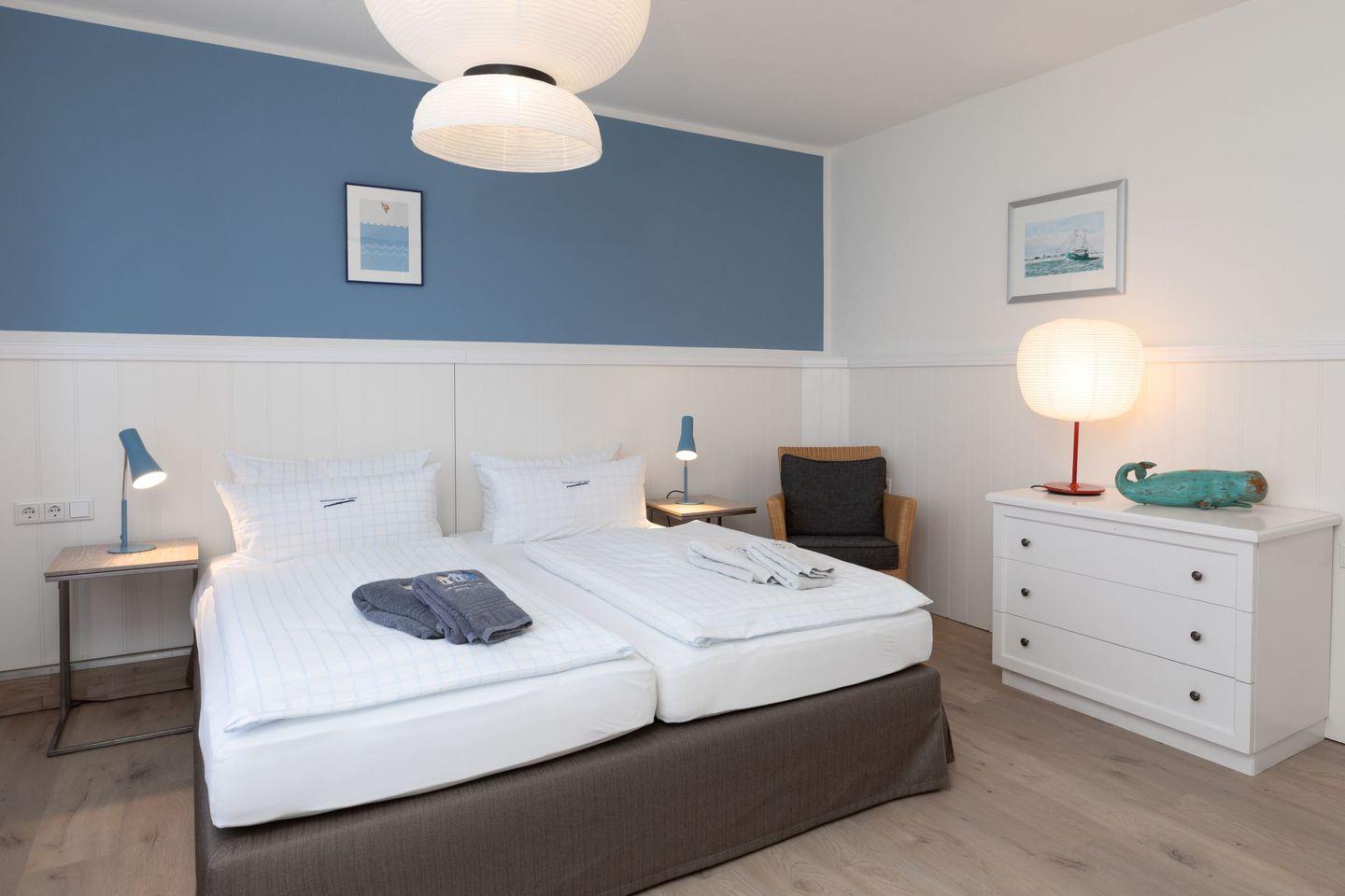 "Steuerbord" kann mit der Wohnung "Dingi" kombiniert werden, um eine größere Unterkunft mit insgesamt 4 Betten zu schaffen.