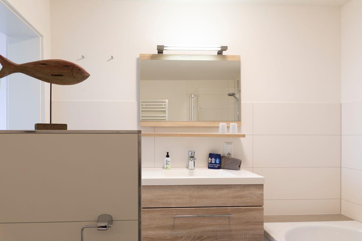 Das Bad verfügt über Badewanne und Dusche. Grundsätzlich sind Fön sowie Handtücher/Duschtücher vorhanden.
