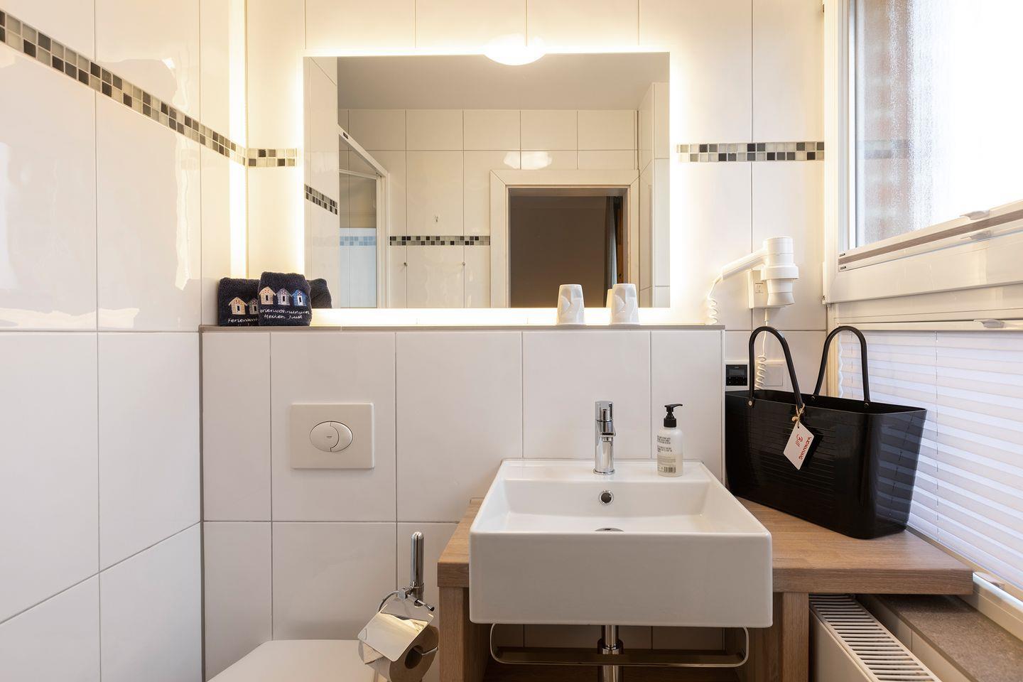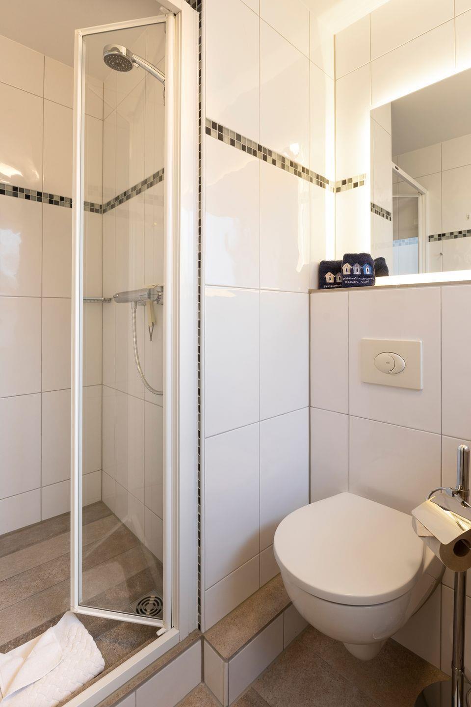 Im Bad befindet sich eine Dusche. Grundsätzlich sind ein Fön, sowie Handtücher/Duschtücher vorhanden.