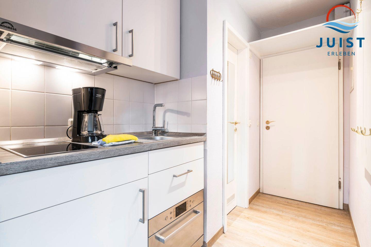 Die Küche ist mit allem ausgestattet, was Sie benötigen, darunter ein 2-Platten-Herd, Backofen, Spülmaschine, Kaffeemaschine, Wasserkocher und Toaster.