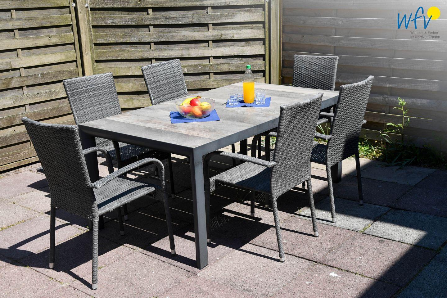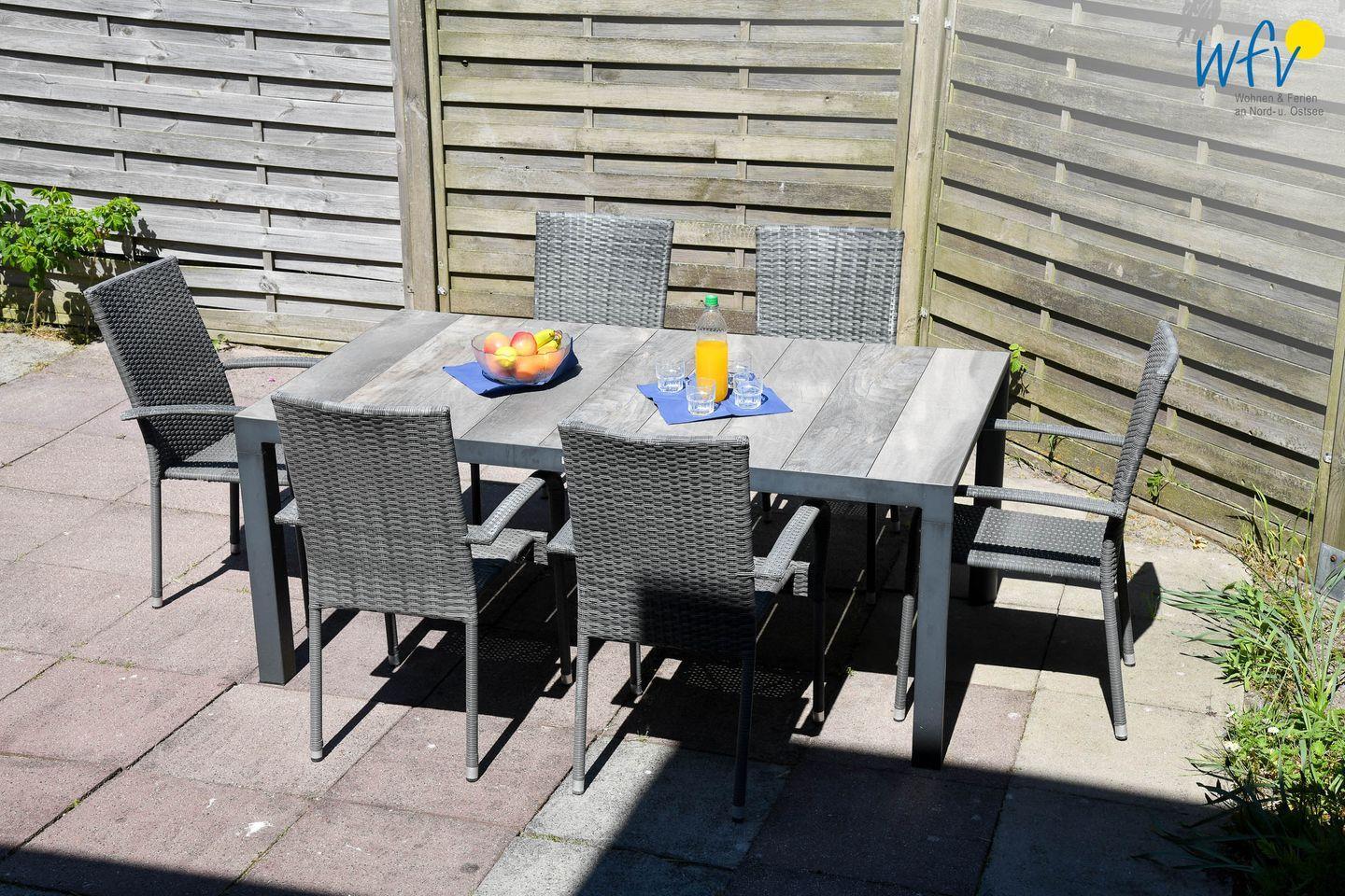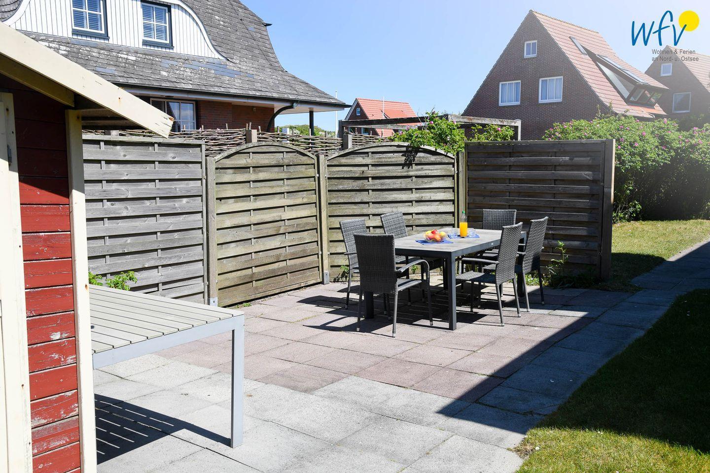 Gemütliche Ferienwohnung auf Juist mit Terrasse, Garten und moderner Ausstattung für erholsamen Nordseeurlaub.