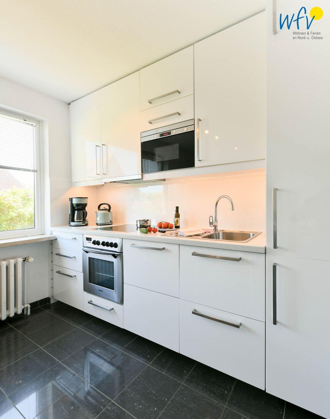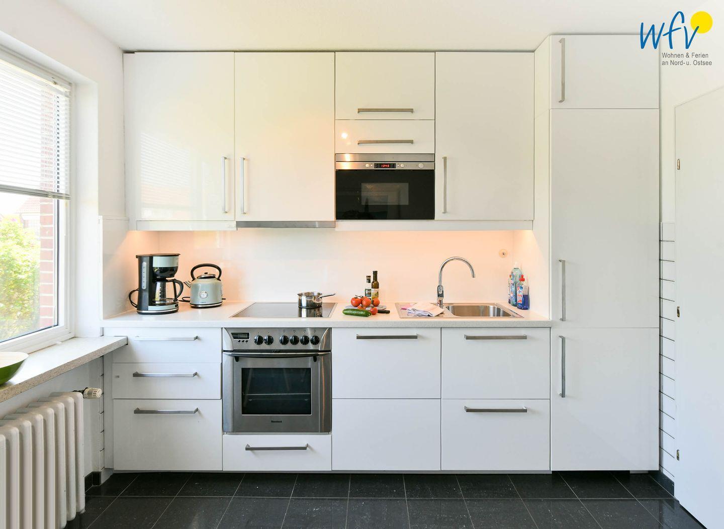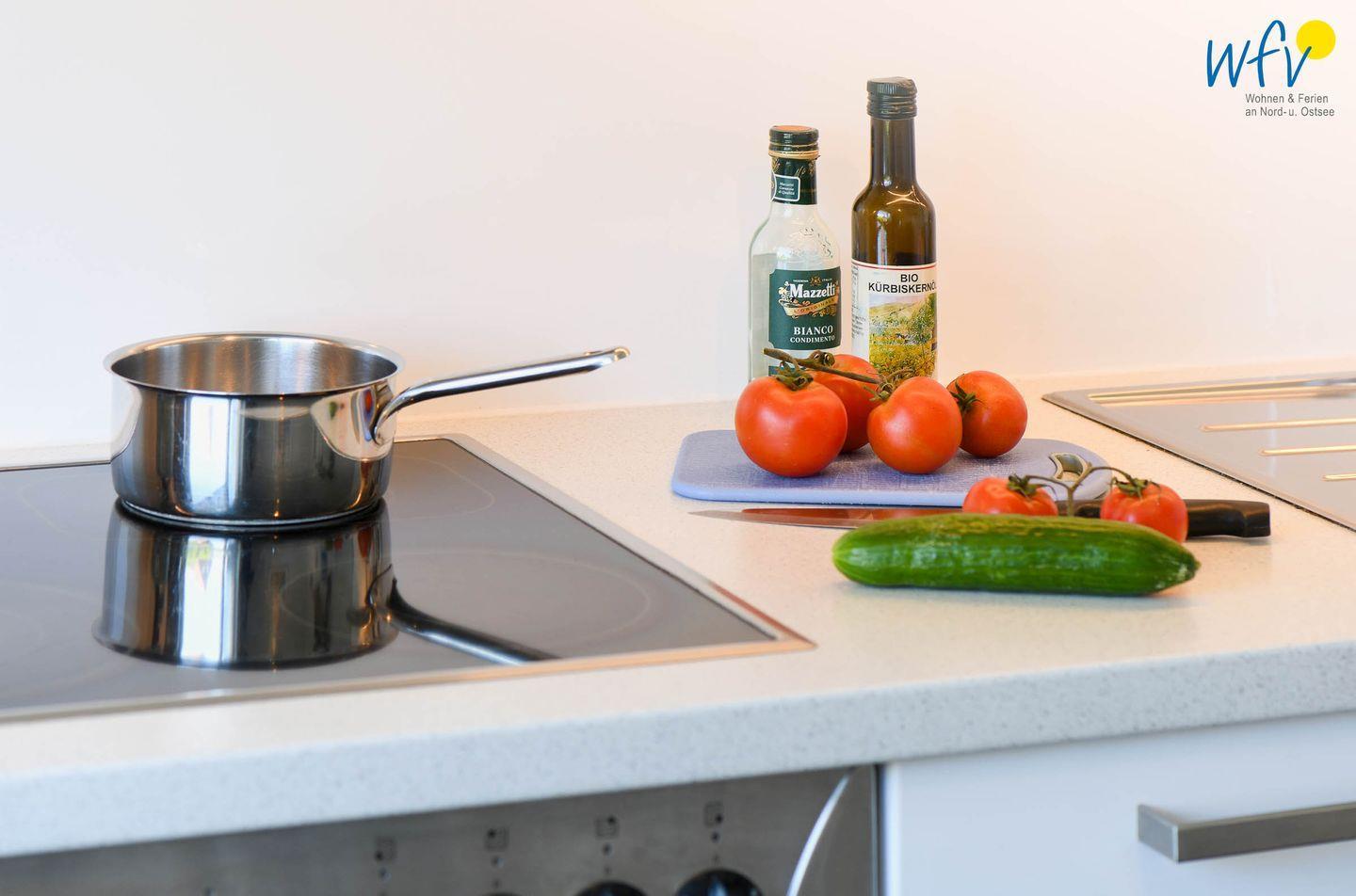 In der separaten Küche lassen sich schnell und einfach leckere Gerichte zubereiten. Sie ist u.a. mit einer Mikrowelle, einem Herd, einem Backofen und einer Spülmaschine ausgestattet. Gemeinsame Mahlzeiten können Sie hier oder an dem Esstisch im Wohnraum einnehmen.