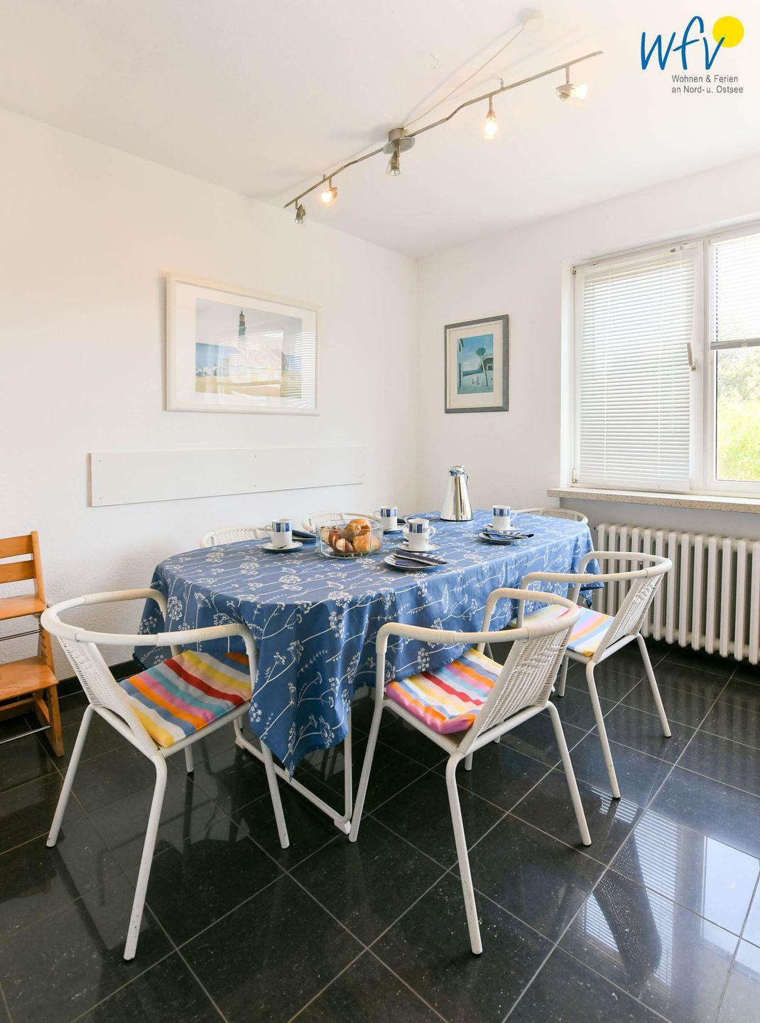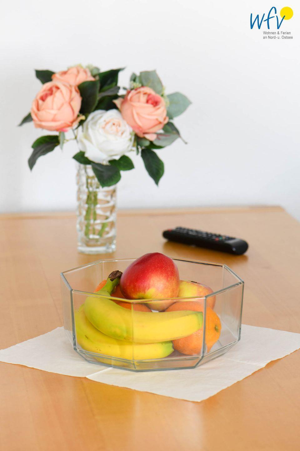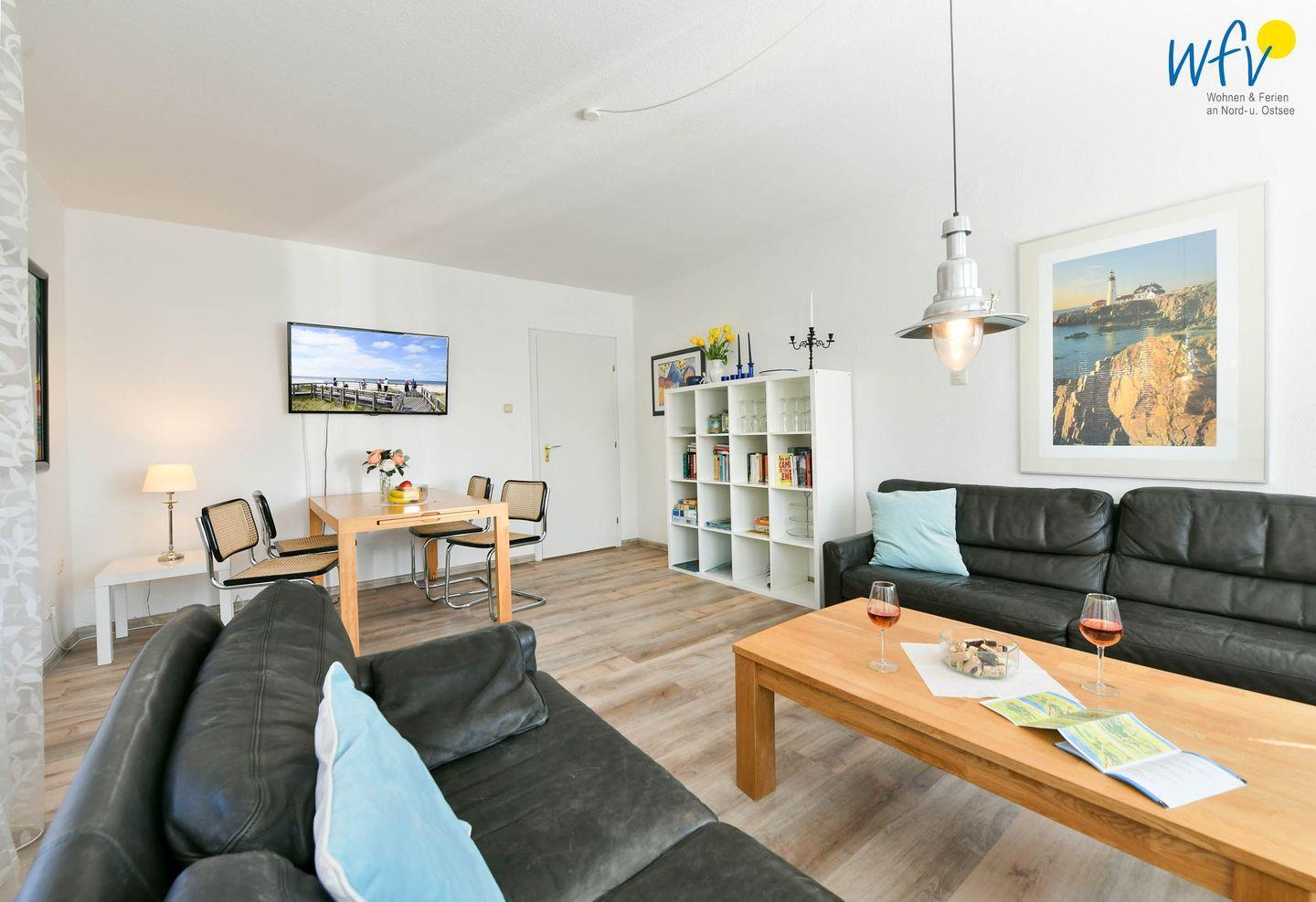 Im Wohnraum lädt nach der Fahrradtour oder dem Strandtag eine bequeme Couchecke mit TV und Radio zu erholsamen Stunden ein. Zum Surfen vom Smartphone aus empfangen Sie kostenlos freies WLAN. Oder Sie lassen den Blick aus den großen Fenster schweifen: Vom Wohnzimmer aus haben Sie eine sehr schöne Aussicht in die ruhige Umgebung.