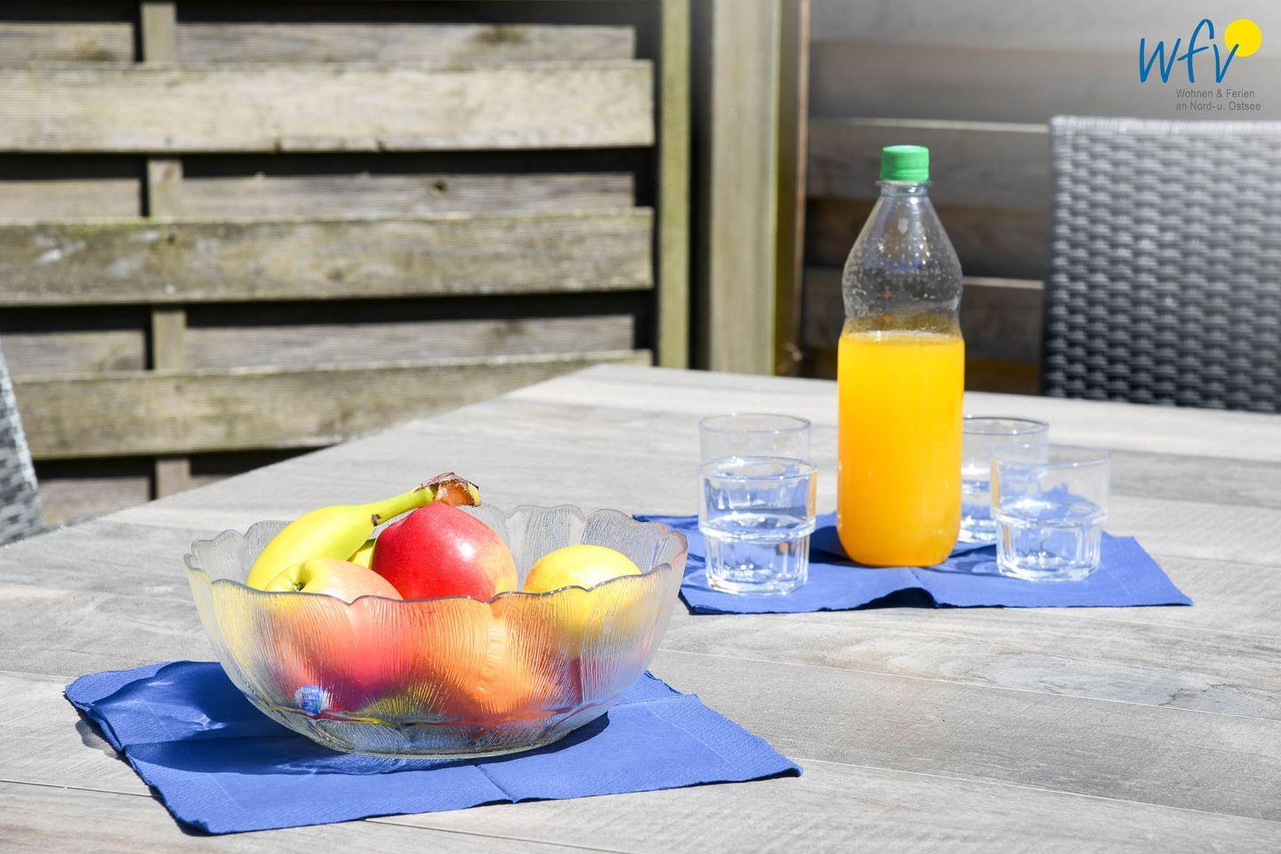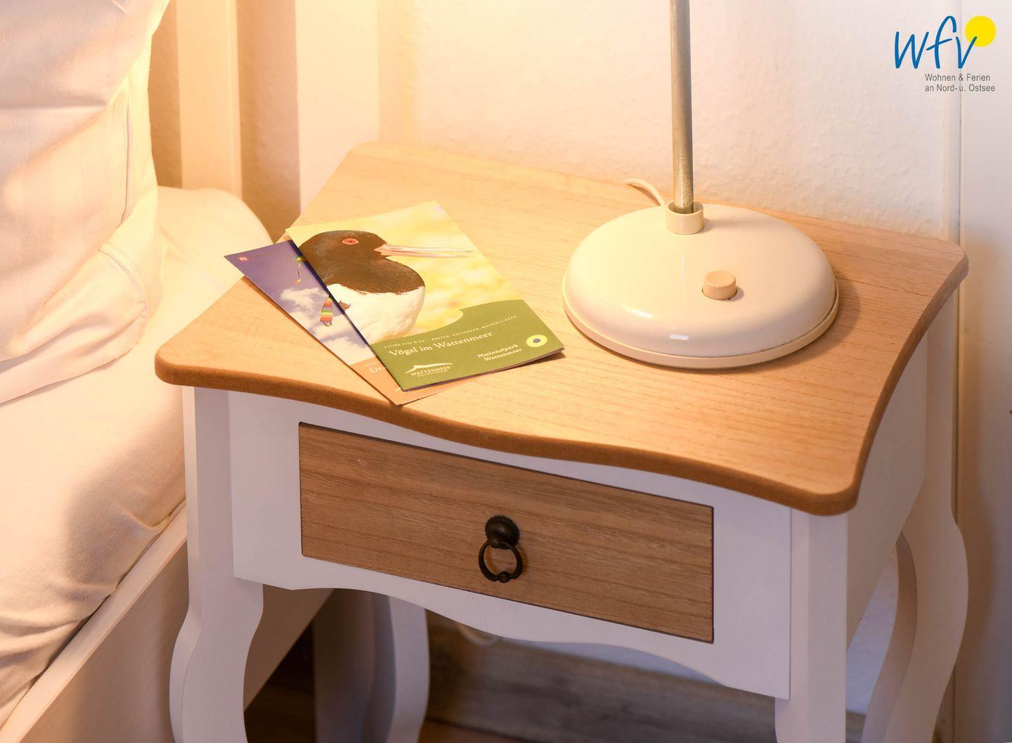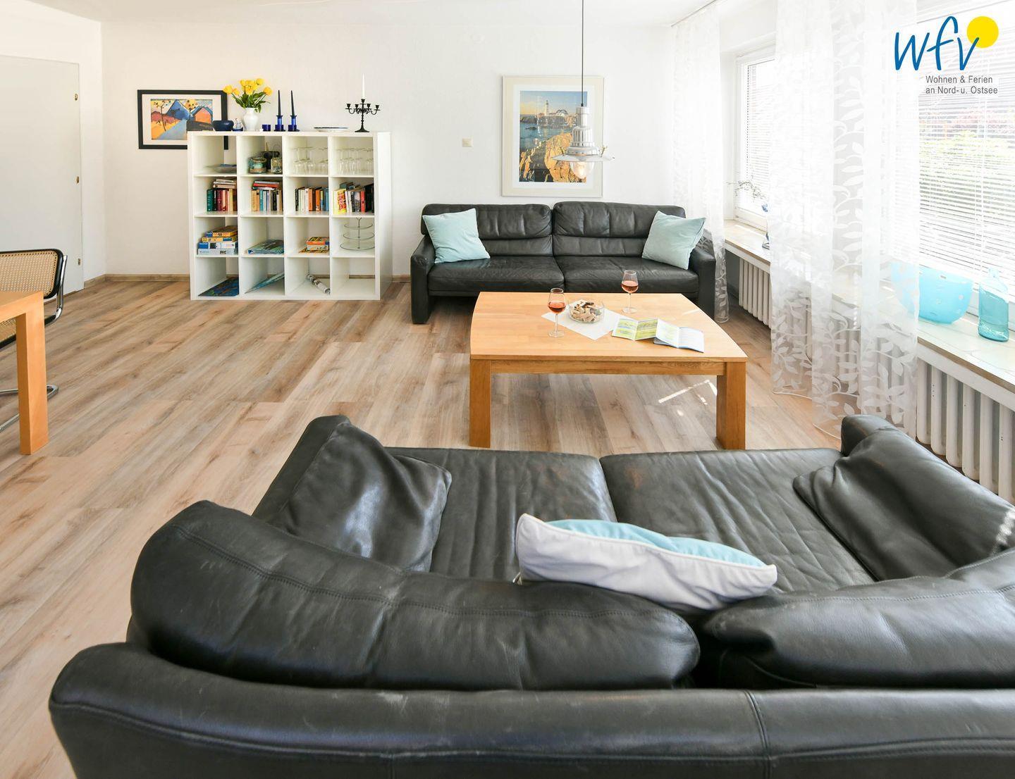 Im Wohnraum lädt nach der Fahrradtour oder dem Strandtag eine bequeme Couchecke mit TV und Radio zu erholsamen Stunden ein. Zum Surfen vom Smartphone aus empfangen Sie kostenlos freies WLAN. Oder Sie lassen den Blick aus den großen Fenster schweifen: Vom Wohnzimmer aus haben Sie eine sehr schöne Aussicht in die ruhige Umgebung.