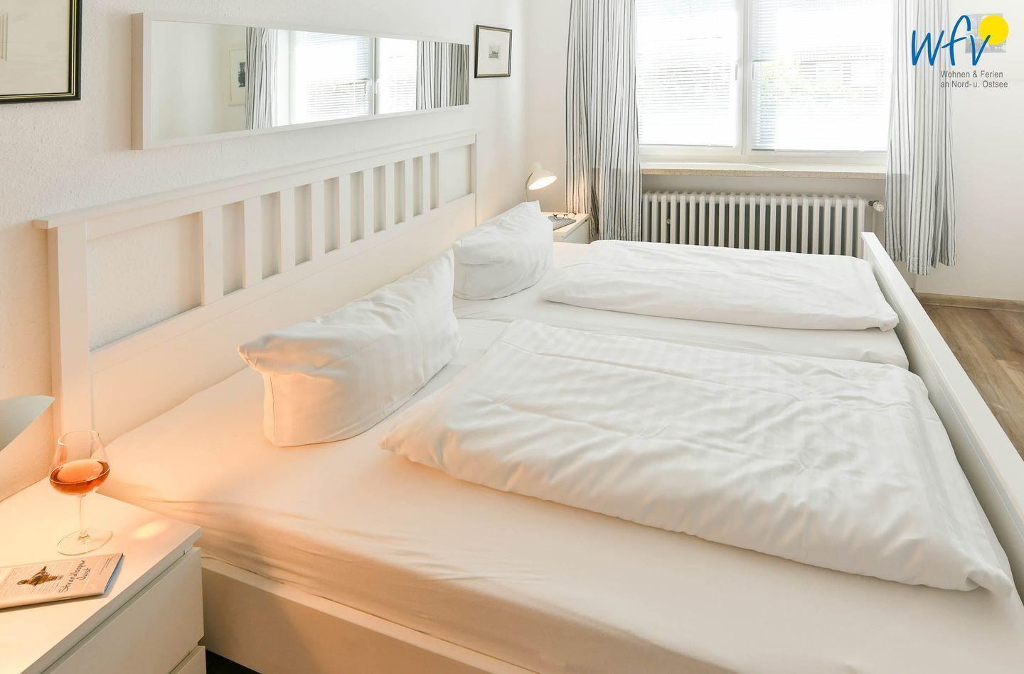 Zwei separate Schlafzimmer bieten Ihnen in der Ferienwohnung angenehme Rückzugsmöglichkeiten. In dem einen befindet sich ein großes Doppelbett (180 x 200 cm), in dem anderen ein kleines Doppelbett (140 x 200 cm).