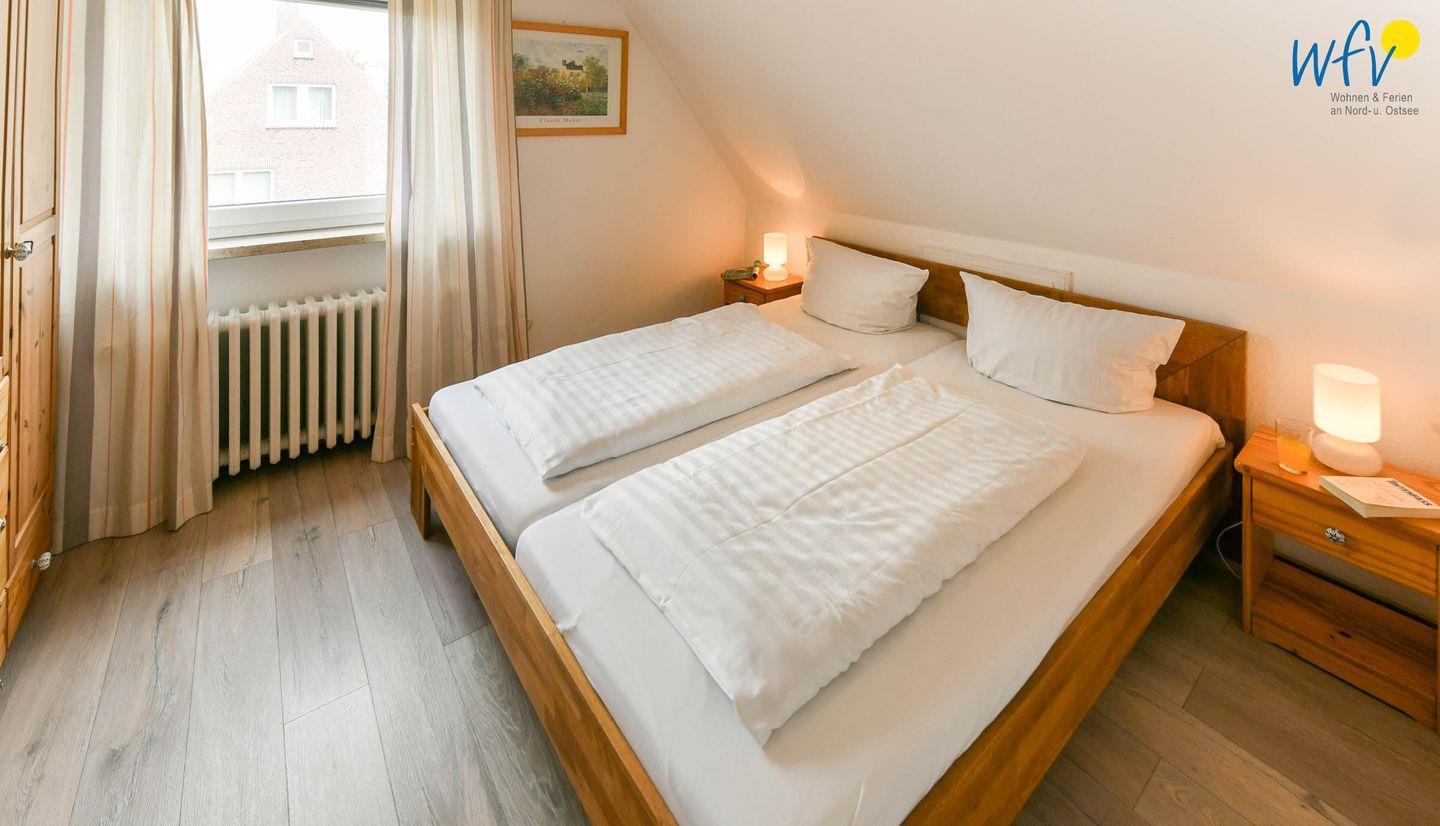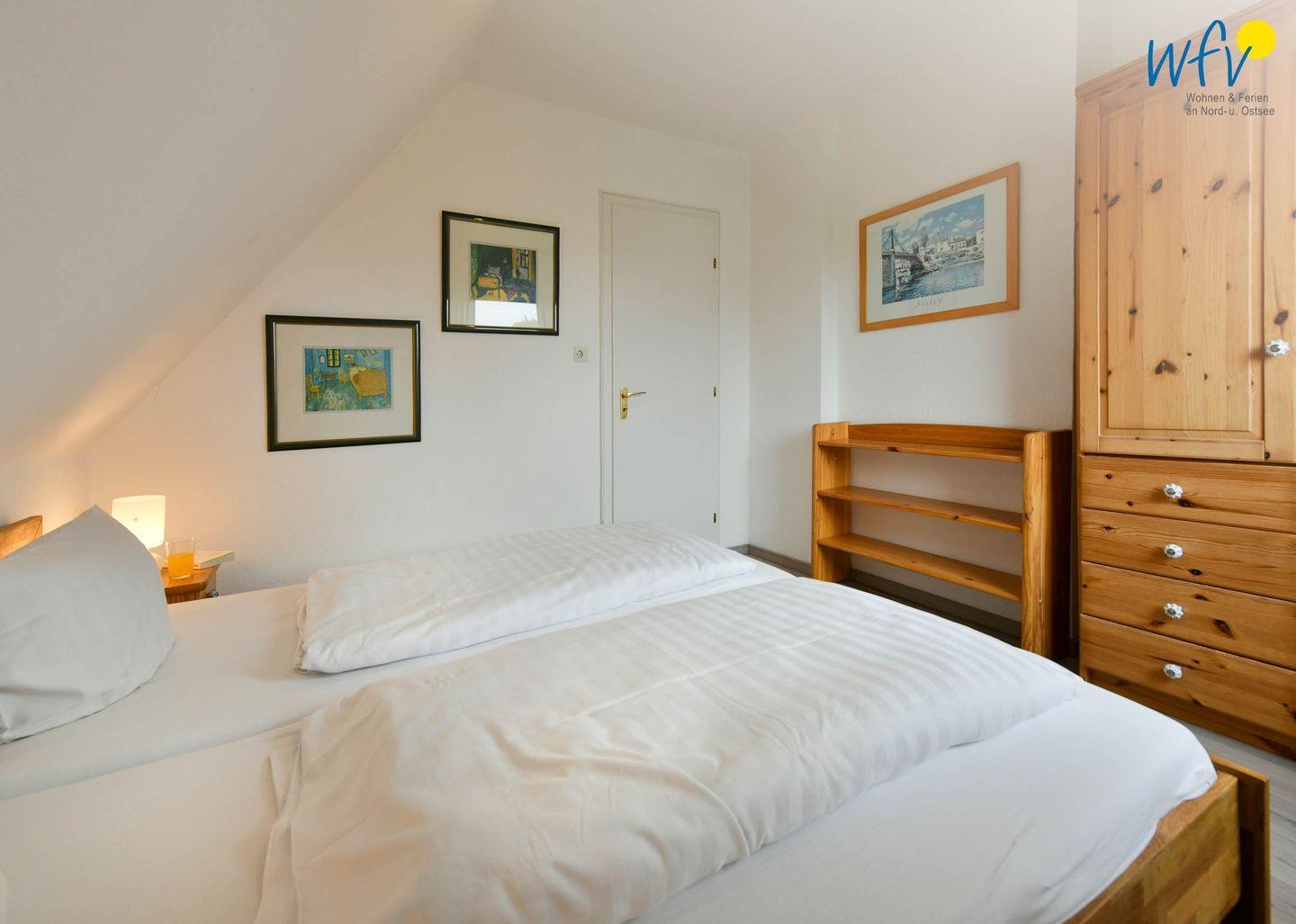 Zwei separate Schlafzimmer bieten Ihnen in der Ferienwohnung angenehme Rückzugsmöglichkeiten. In dem einen befindet sich ein großes Doppelbett (180 x 200 cm), in dem anderen zwei Einzelbetten (je 90 x 200 cm).