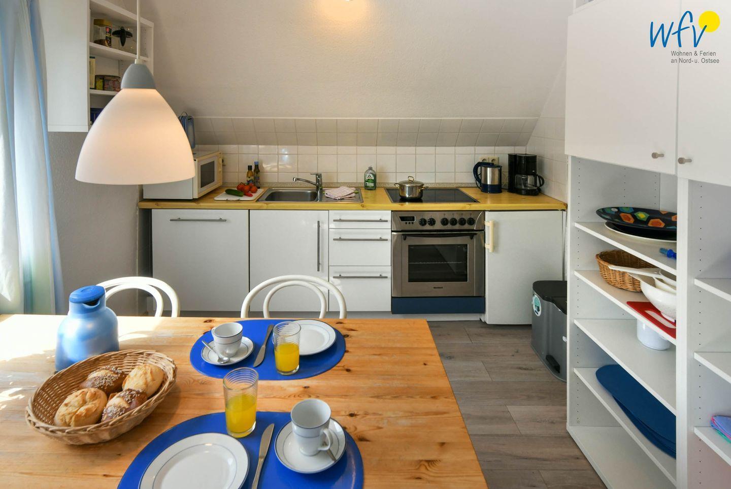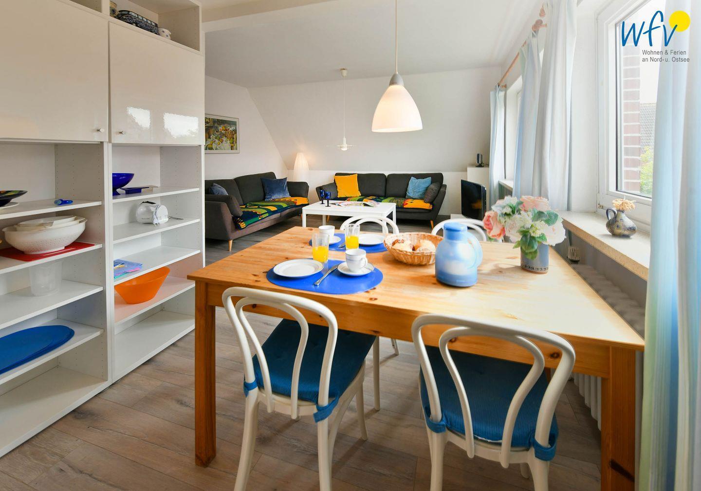 Gemütliche Ferienwohnung auf Juist mit Terrasse, WLAN und moderner Küche für erholsamen Nordseeurlaub.