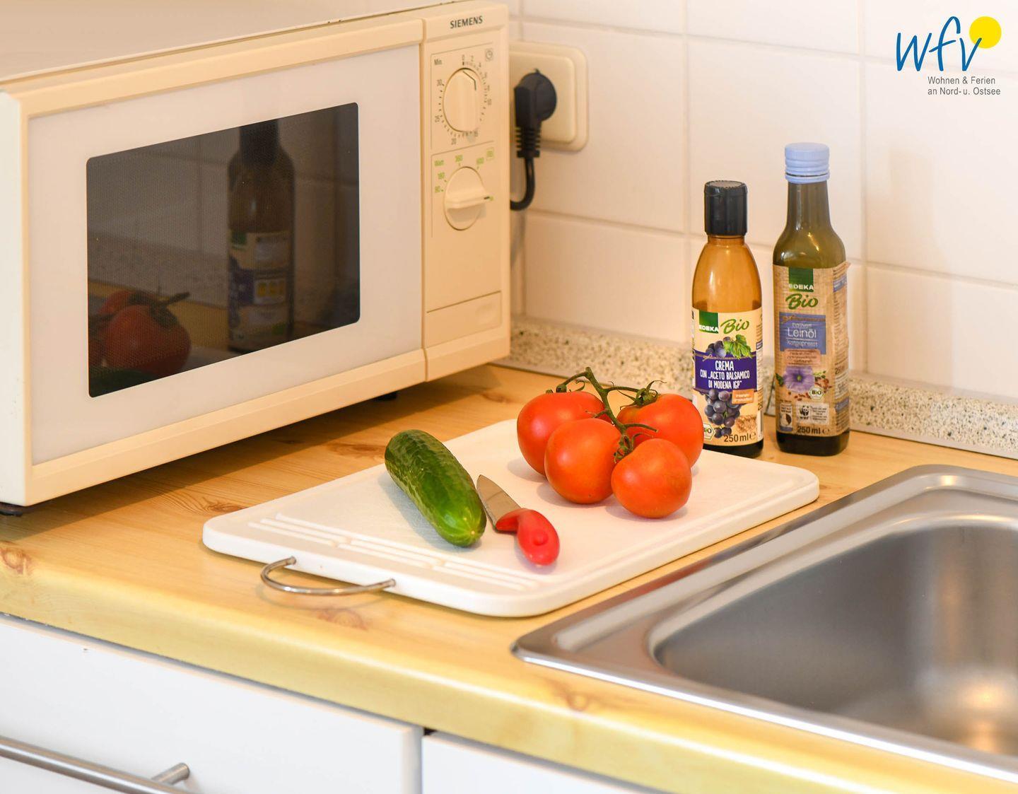 Nach der Fahrradtour oder dem Strandtag lädt der gemütliche Wohnraum mit schöner Abendsonne zum Entspannen ein. Auf den zwei Sofas mit TV und Radio können Sie es sich bequem machen. Zum Surfen vom Smartphone aus empfangen Sie kostenlos freies WLAN.