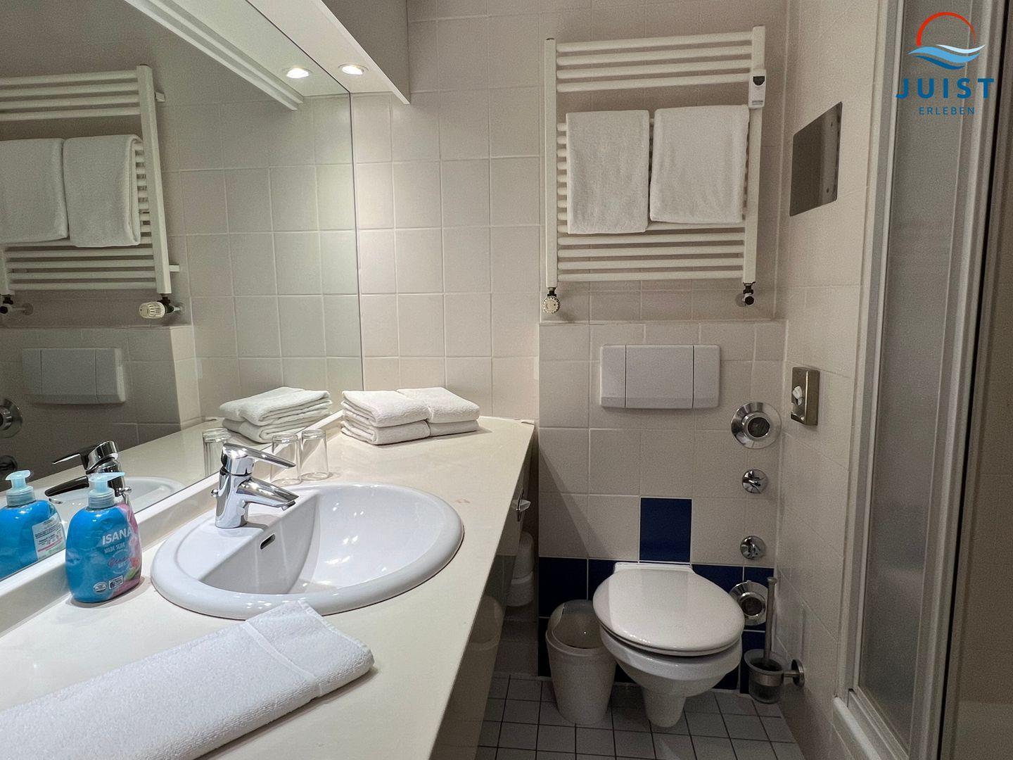 Das Duschbad bietet Ihnen die Möglichkeit, sich nach einem Tag voller Erkundungen zu entspannen.