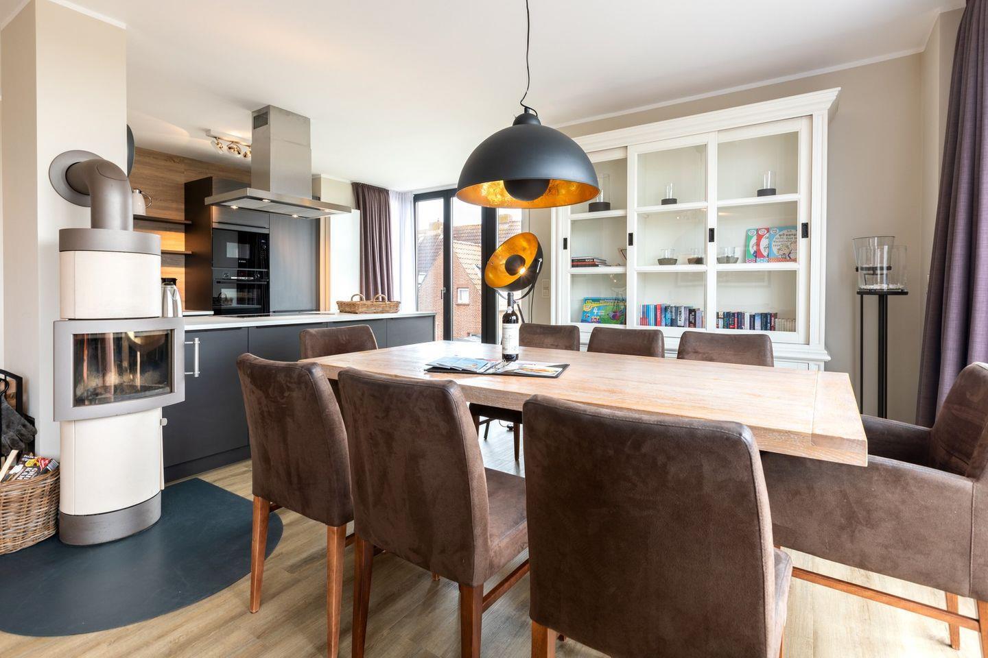 Traumhaftes Reetdachhaus (bis 8 Pers.) direkt am Strandaufgang, stilvoll-modern im friesischen Design. Drei Etagen mit höchstem Komfort: 4 Schlafzimmer (alle mit TV), 4 Bäder (Badewanne), Wohnküche mit Kamin und großem Esstisch, gemütlicher Wohnbereich mit Dünenblick, Balkon und Terrasse mit Strandkorb. WLAN, Handtücher, Bettwäsche, Bademäntel, Pflegeprodukte sowie Waschmaschine/Trockner inklusive. Eigene Terrasse mit Strandkorb. Grillplatz zur Gemeinschaftsnutzung. 4 Leihfahrräder vorhanden. Hunde willkommen (€50/Woche). Perfekte Lage nahe Zentrum & Loog – ideal für Ihren Traumurlaub!