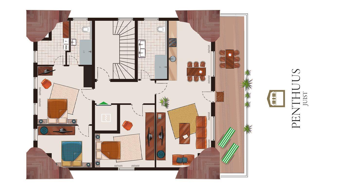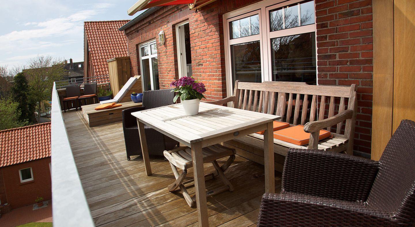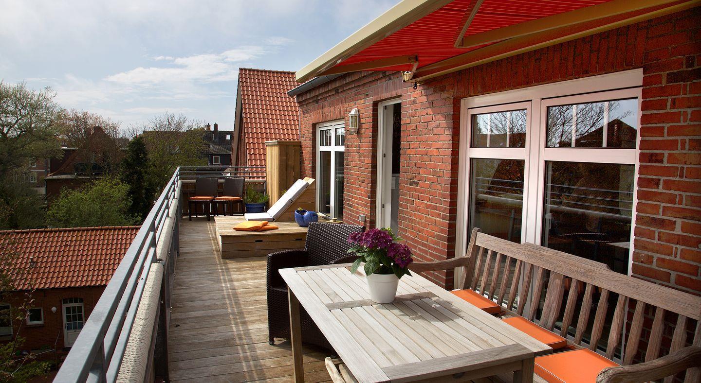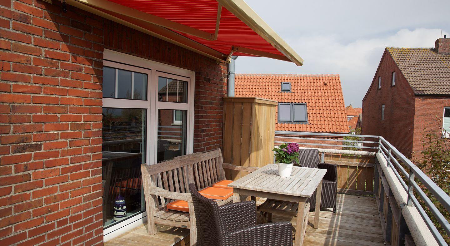 Modernes Penthouse in Juist mit Südbalkon, Fahrstuhl und Komfort für bis zu 6 Personen, nur wenige Schritte vom Hafen entfernt.