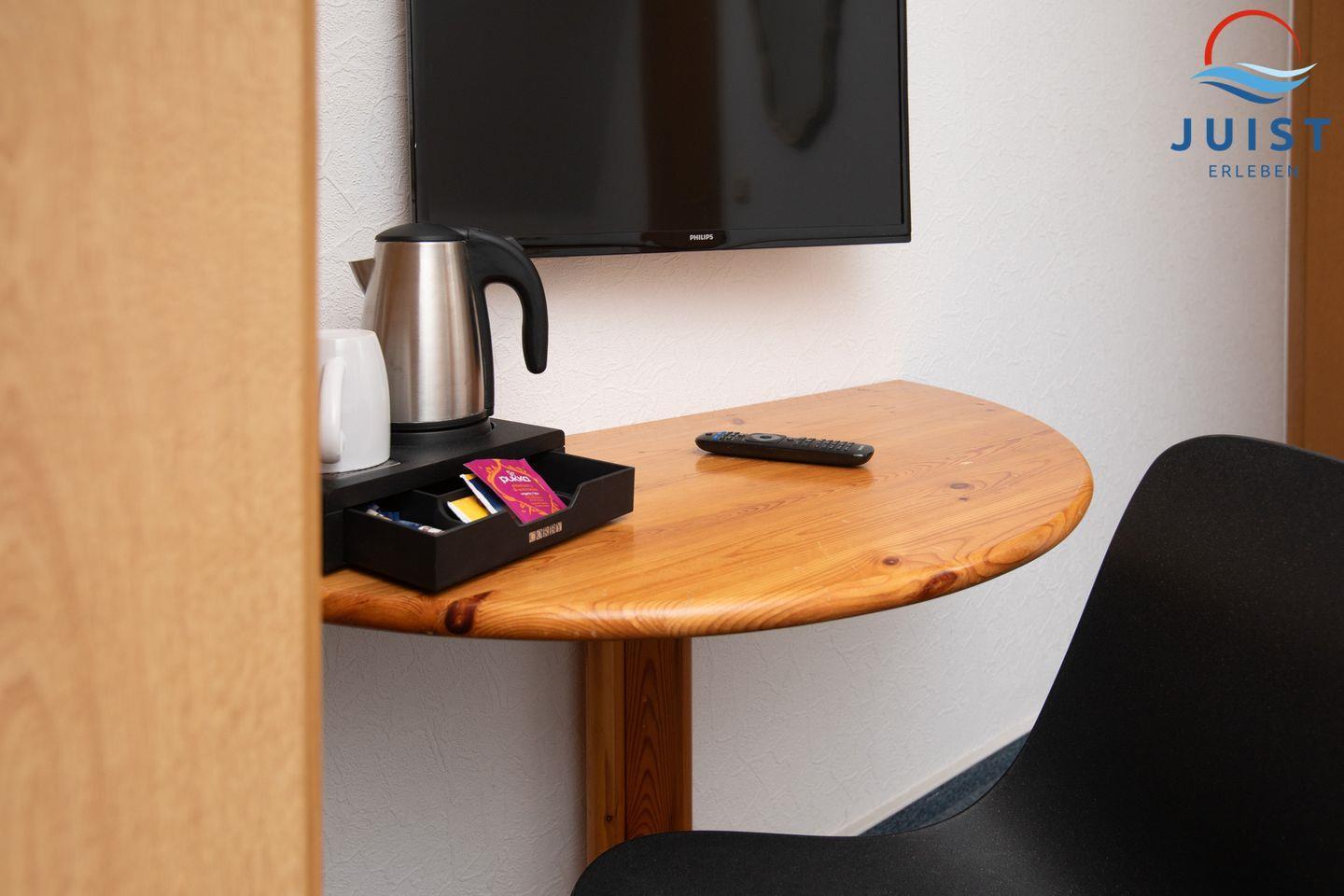 Gemütliches Zimmer mit eigenem Bad und Gemeinschaftsküche, nur 290 m vom Strand auf Juist entfernt.