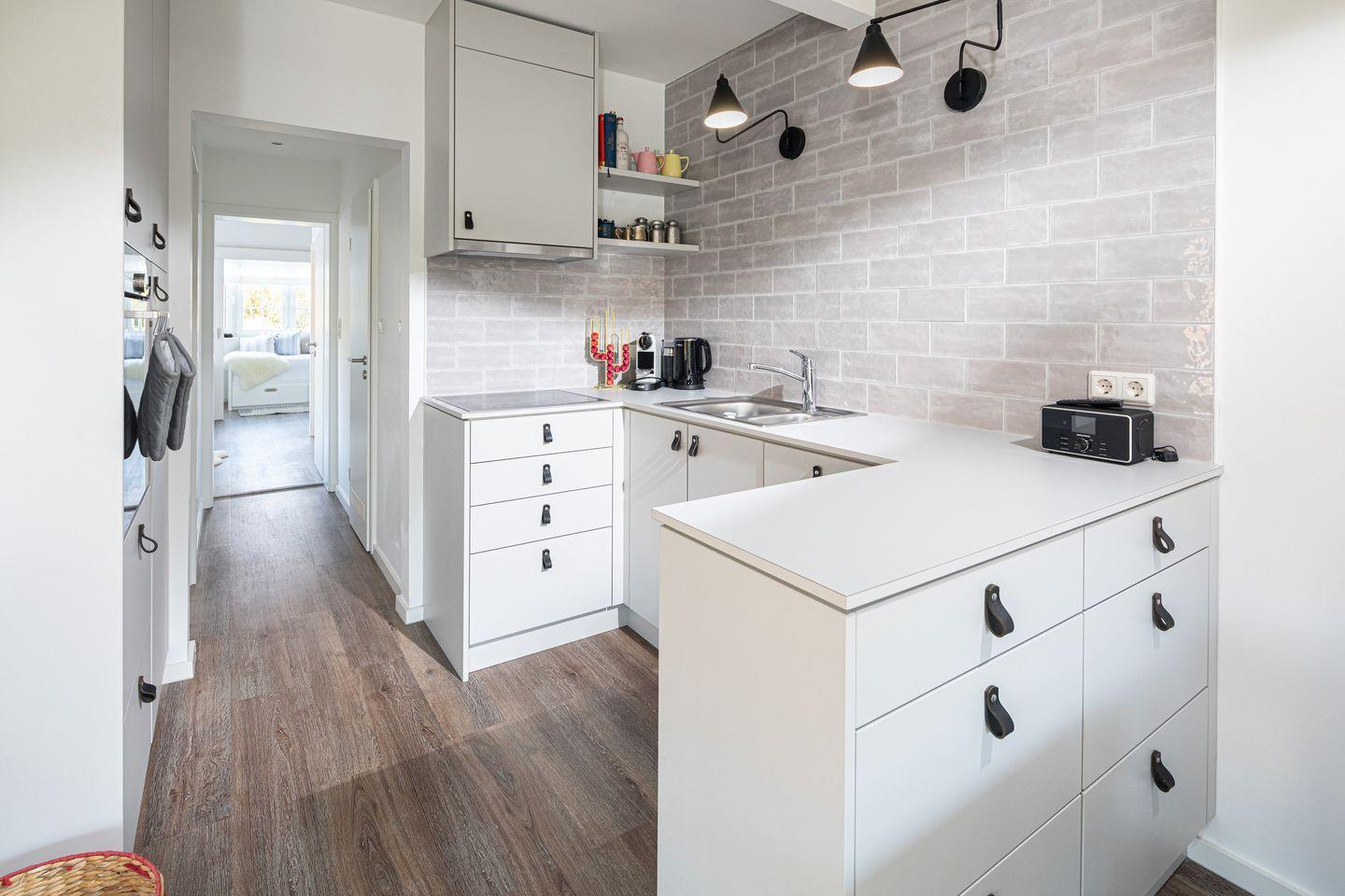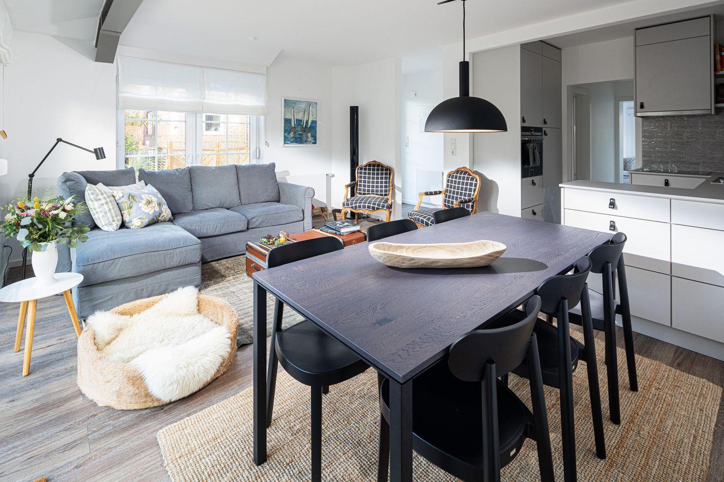 Der sehr helle und stillvoll eingerichtete Wohnbereich lädt mit einem großen Sofa, Fernseher und W-LAN zum Verweilen ein. Der renovierten Küche fehlt es an nichts: das Induktionskochfeld, der Backofen und eine Spülmaschine runden das Angebot ab.