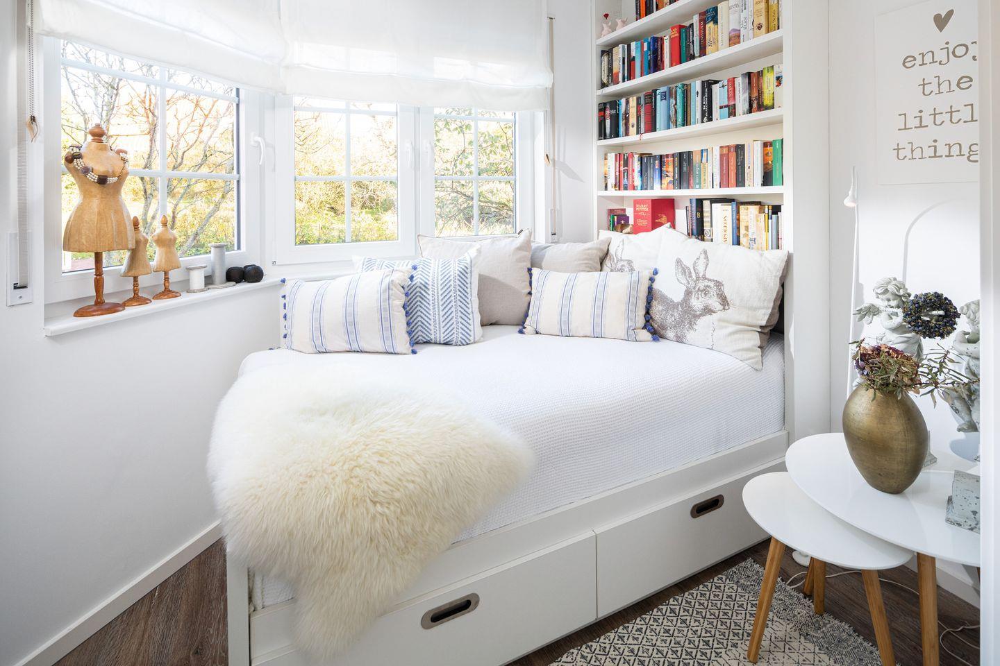 Ein Schlafzimmer kann als Doppelbett oder als 2 Einzelbetten genutzt werden. Das zweite Schlafzimmer hat ein Doppelbett und in einem "extra" Schlafzimmer, was gleichzeitig eine kleine Bibliothek ist, kann eine 5. Person schlafen.