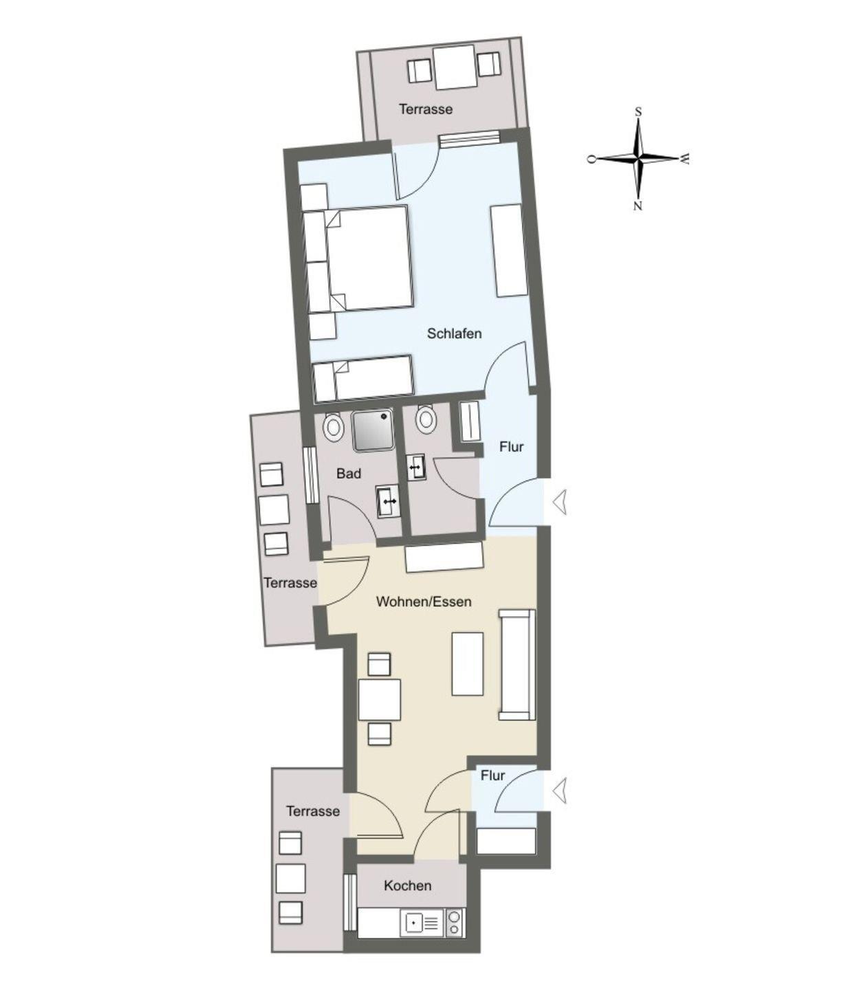Ein besonderes Highlight des Appartements sind die 3 Terrassen( zwei Richtung Kurplatz, eine Richtung Süden), die zum Entspannen und Verweilen einladen. Hier können Sie Ihre Tage in einem der bereitgestellten Strandkörbe genießen oder die Gartenmöbel nutzen, um eine Tasse Kaffee oder ein Glas Wein in der frischen Seeluft zu genießen.