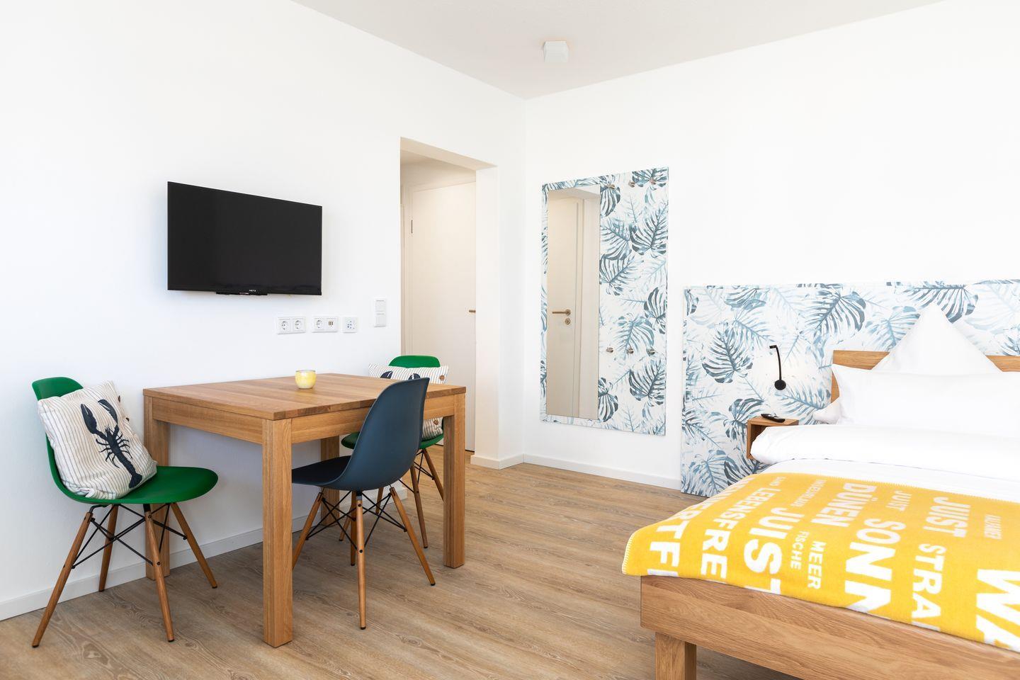 Modernes 1-Zimmer-Appartement mit Balkon und Strandkorb auf Juist, nur 400 m vom Strand entfernt, neu renoviert 2025.