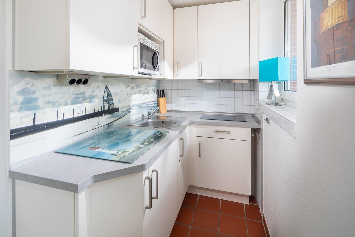 Ein besonderes Highlight ist der Balkon mit kleinem Strandkorb, auf dem Sie entspannt die frische Seeluft und vielleicht sogar den Sonnenuntergang in vollen Zügen genießen können. Für Unterhaltung sorgt ein Fernseher, und selbstverständlich ist auch WLAN verfügbar, damit Sie in Kontakt mit Ihren Liebsten bleiben können.