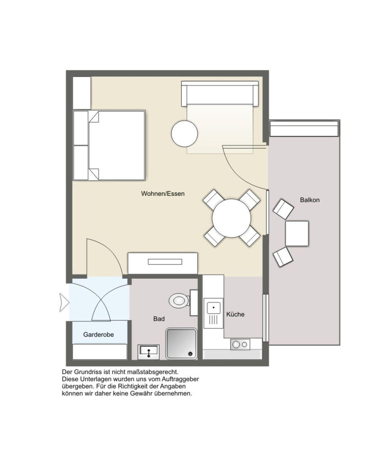 Schickes 1-Zimmer-Appartement mit stilvollem Boxspringbett (160x200, neu, mit festen Matratzen), einem ausklappbaren & komfortablen Schlafsofa, TV 39", neuer & moderner Pantryküche mit Mikrowelle (mit Grill), Flur; das im Frühjahr 2024 grundsanierte Bad verfügt u. a. über Handtuchheizung, Spiegelschrank, Bluetooth Radio; Balkon zur Wilhelmstraße mit kleinem Strandkorb; für Allergiker geeignet.
