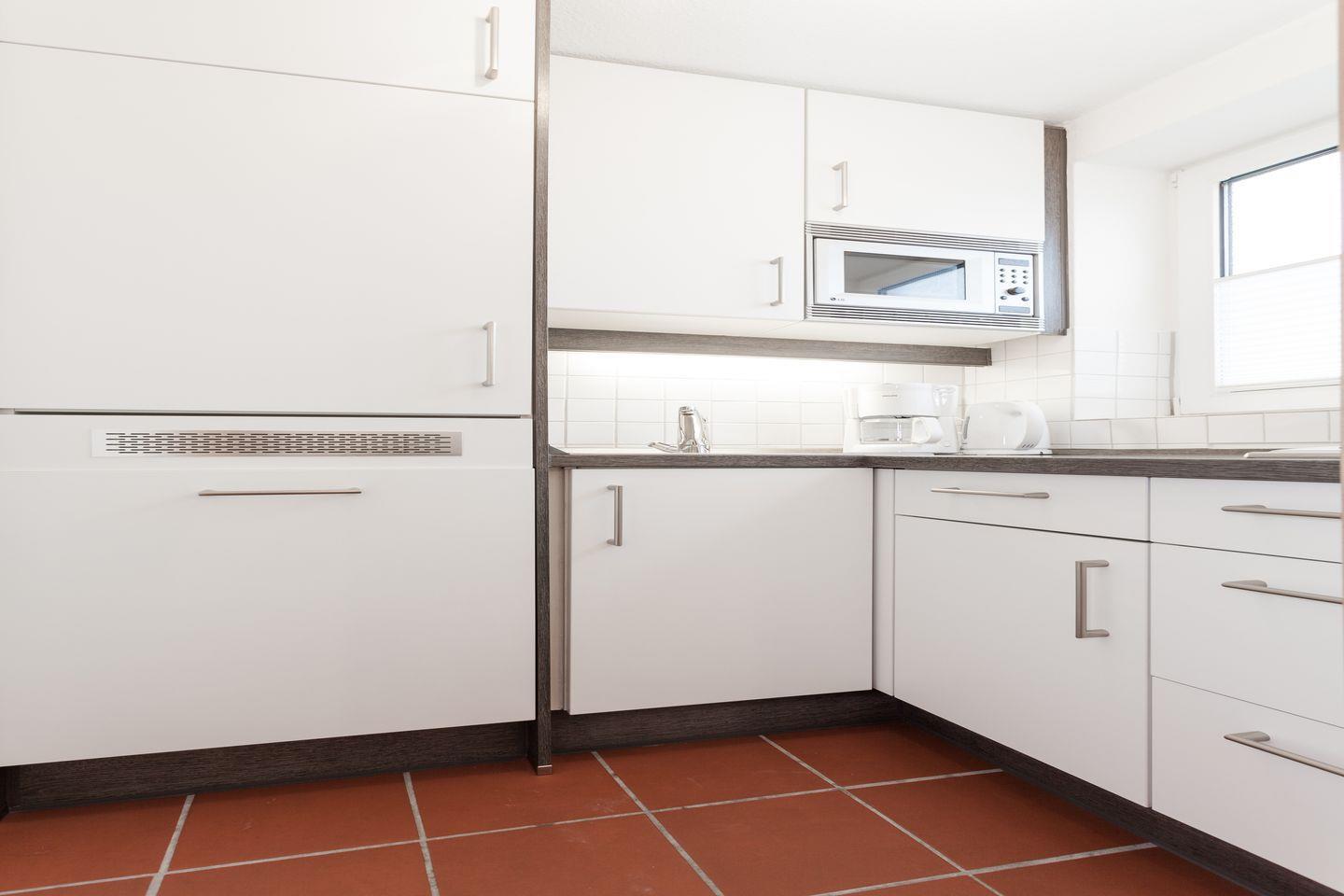 im Zimmer befindet sich ein Schrankbett, ein Sofa und ein Essbereich. Die Kochnische ist mit allem ausgestattet, was Sie für die Zubereitung Ihrer Mahlzeiten benötigen, darunter ein Herd, ein Kühlschrank mit Gefrierfach, eine Spülmaschine sowie diverse Küchengeräte wie Mikrowelle, Toaster und Kaffeemaschine.