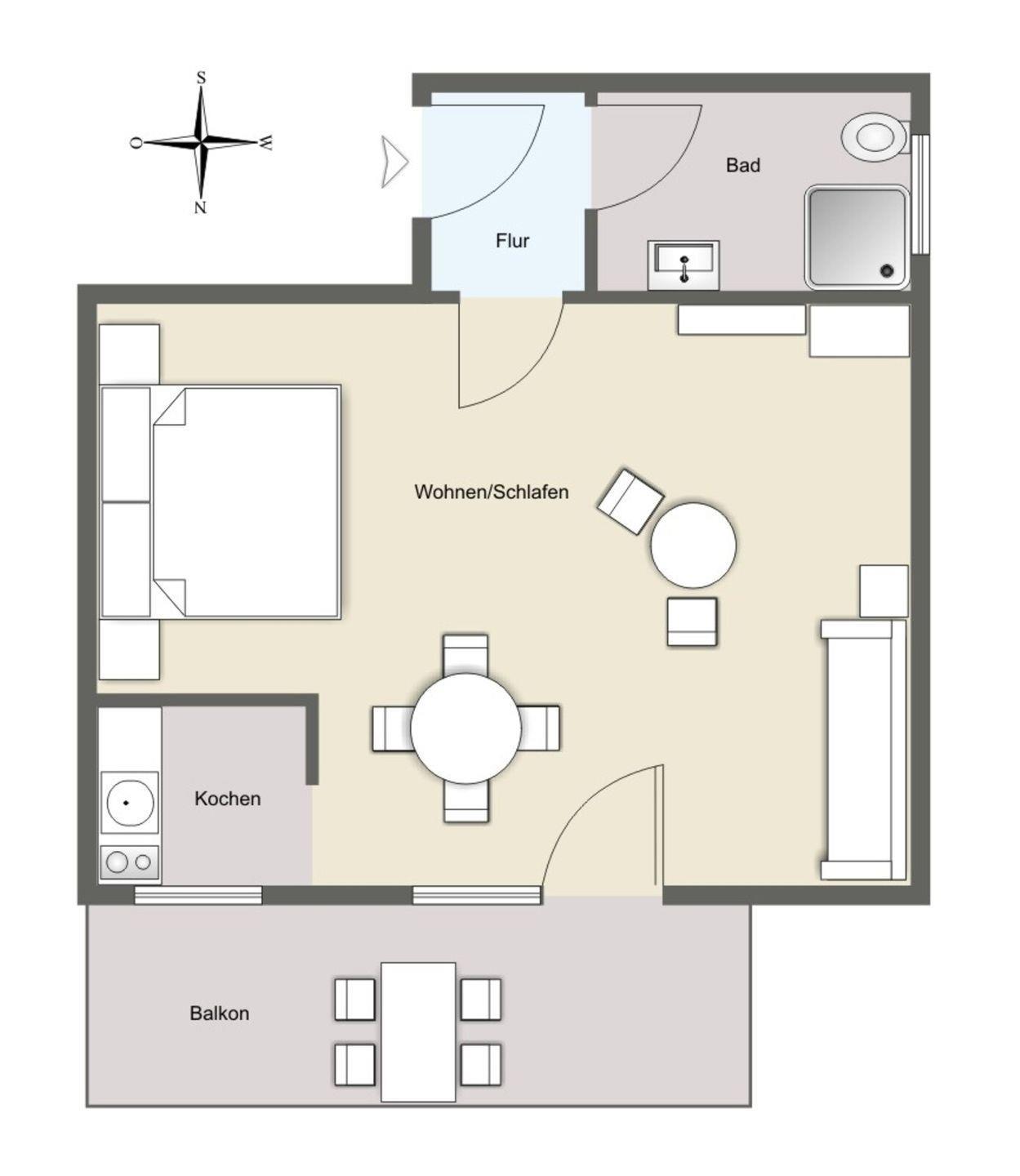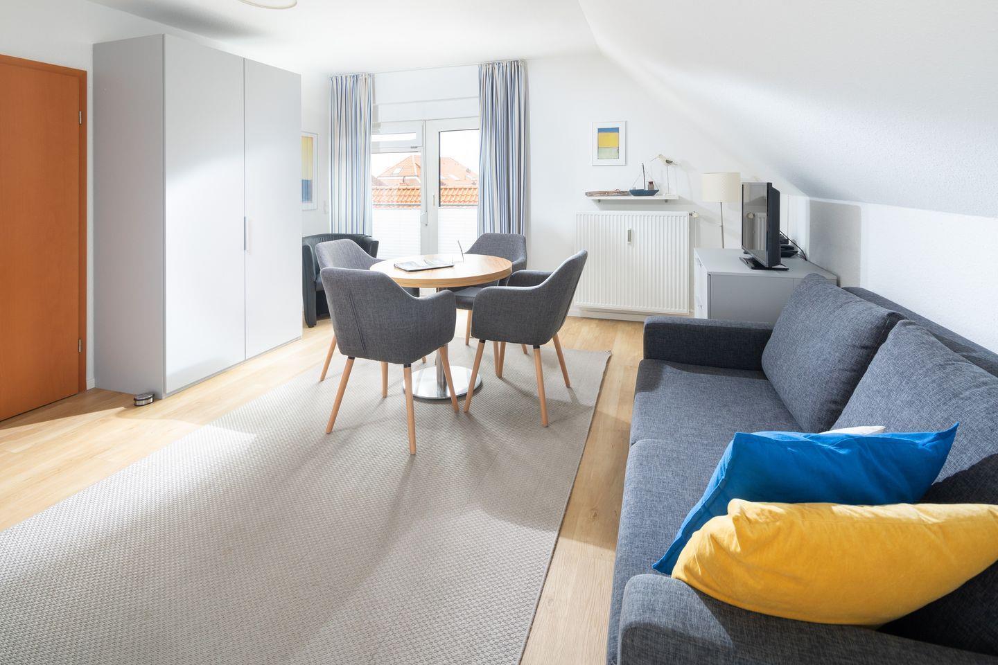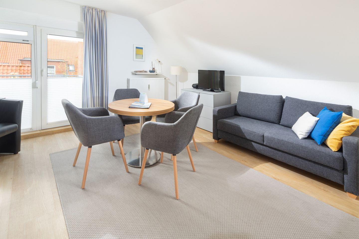 Modernes Appartement auf Juist mit Balkon und Nähe zum Strand, perfekt für Paare und Kleinfamilien.