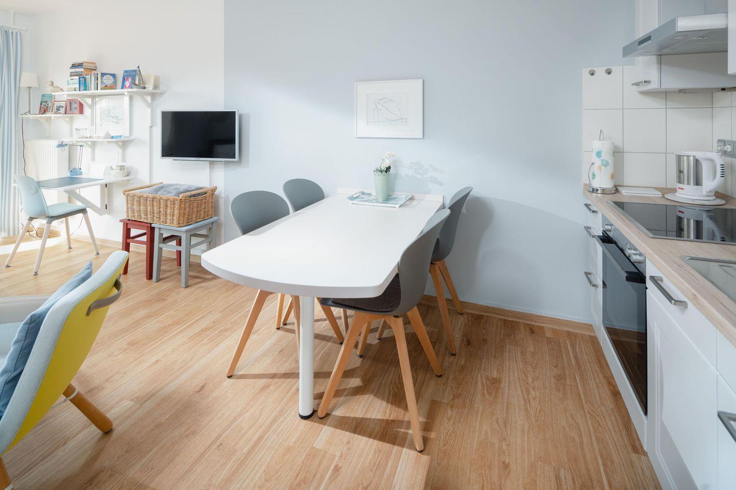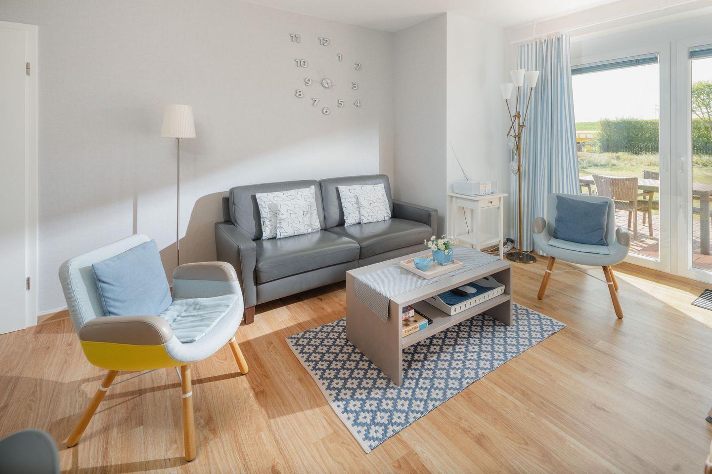 Charmante Ferienwohnung Ebbe & Flut 4 A auf Juist mit 3 Zimmern, Terrasse und WLAN für bis zu 4 Personen, nur 850 m vom Strand entfernt.