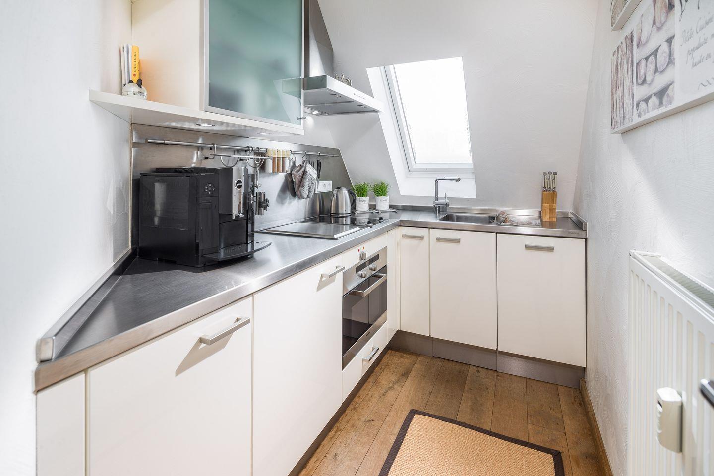 Über die großzügige Treppe erreichen Sie auf der zweiten Ebene das Schlafzimmer (Doppelbett 1,80 x 2,00 m) und das Wohnstudio, dass je nach Belegung als zweites Wohnzimmer oder als Schlafraum (Doppelbett 1,60 x 2,00 m) genutzt werden kann, sowie ein extra WC.
