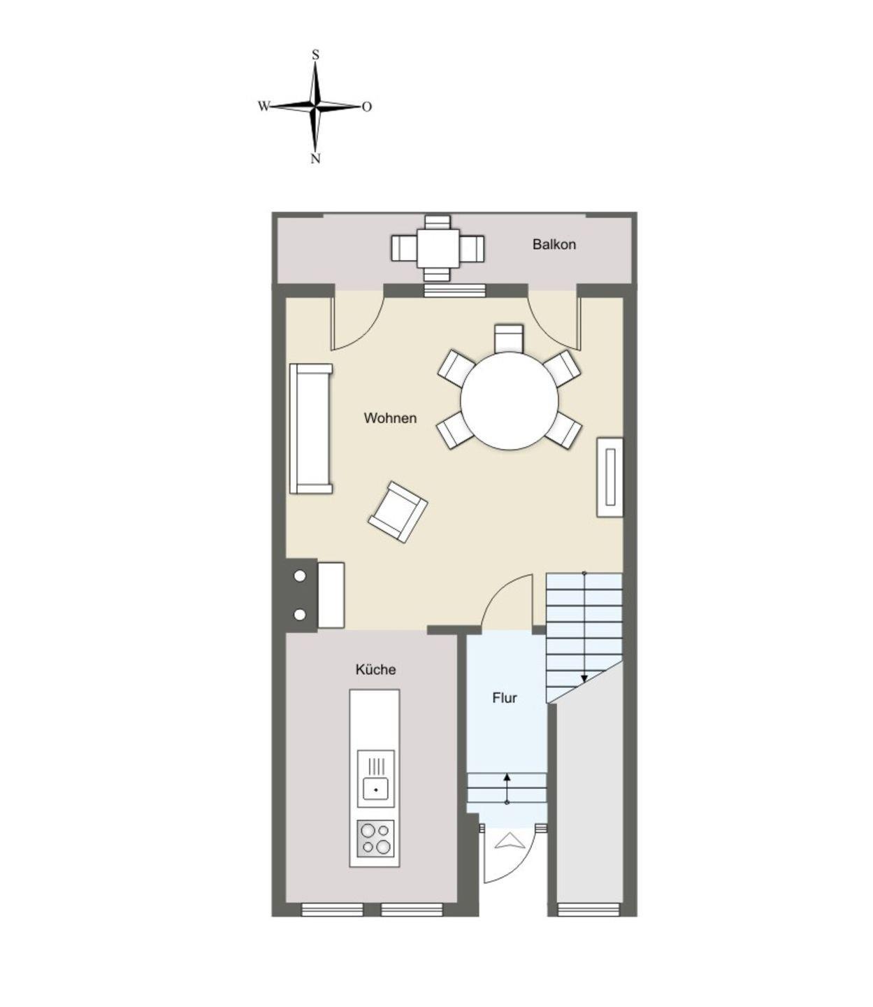 3 Zimmer, 75m2 ,bis 4 Personen, Hochparterre (über 2 Etagen), WLAN