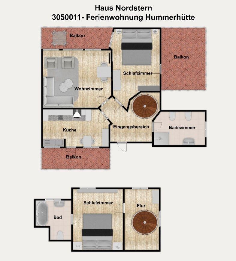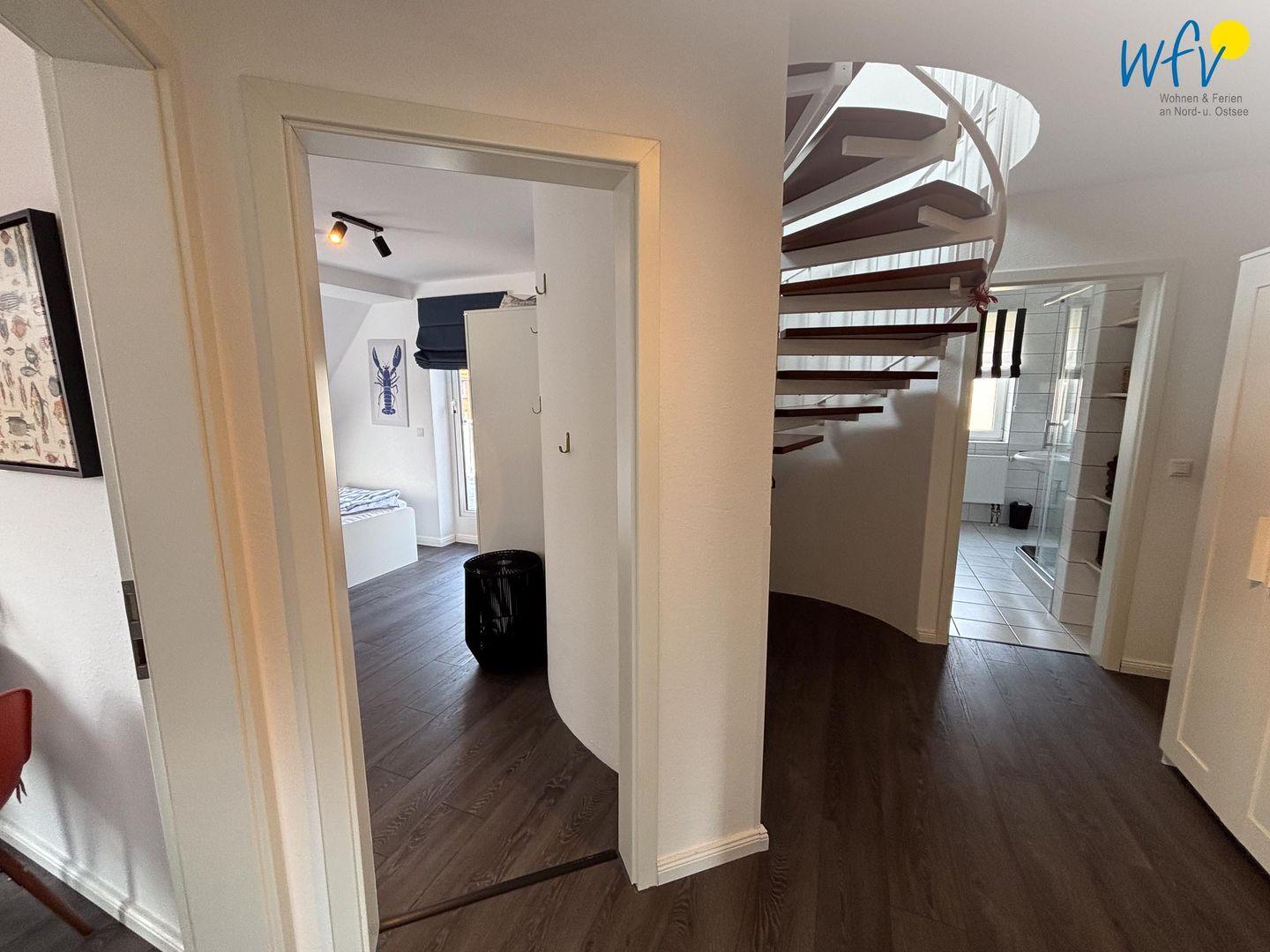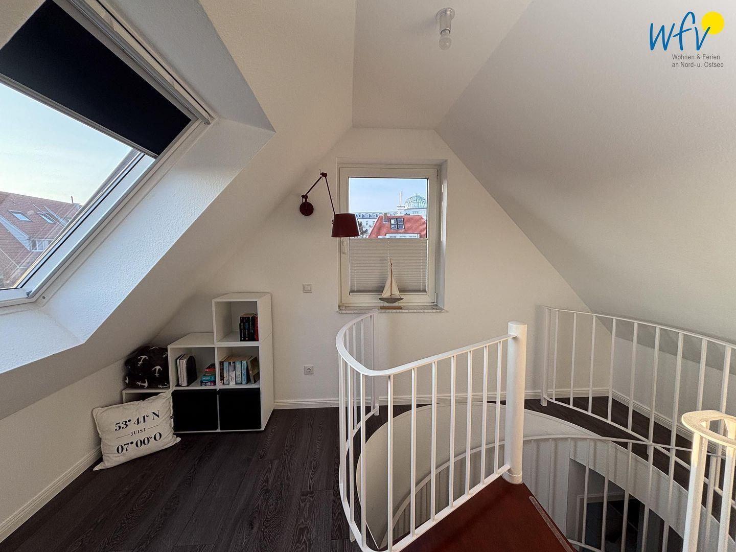 Genießen Sie großzügiges Wohnen über zwei Etagen (2. OG + DG)! Zwei separate Schlafzimmer, eine separate Küche, ein Wohnraum und zwei Bäder sowie zwei Balkone und eine Dachterrasse verwöhnen Sie mit viel Platz, angenehmen Rückzugsmöglichkeiten und Raum zum Erholen. Liebevolle maritime Accessoires sorgen für das entsprechende Nordseegefühl.