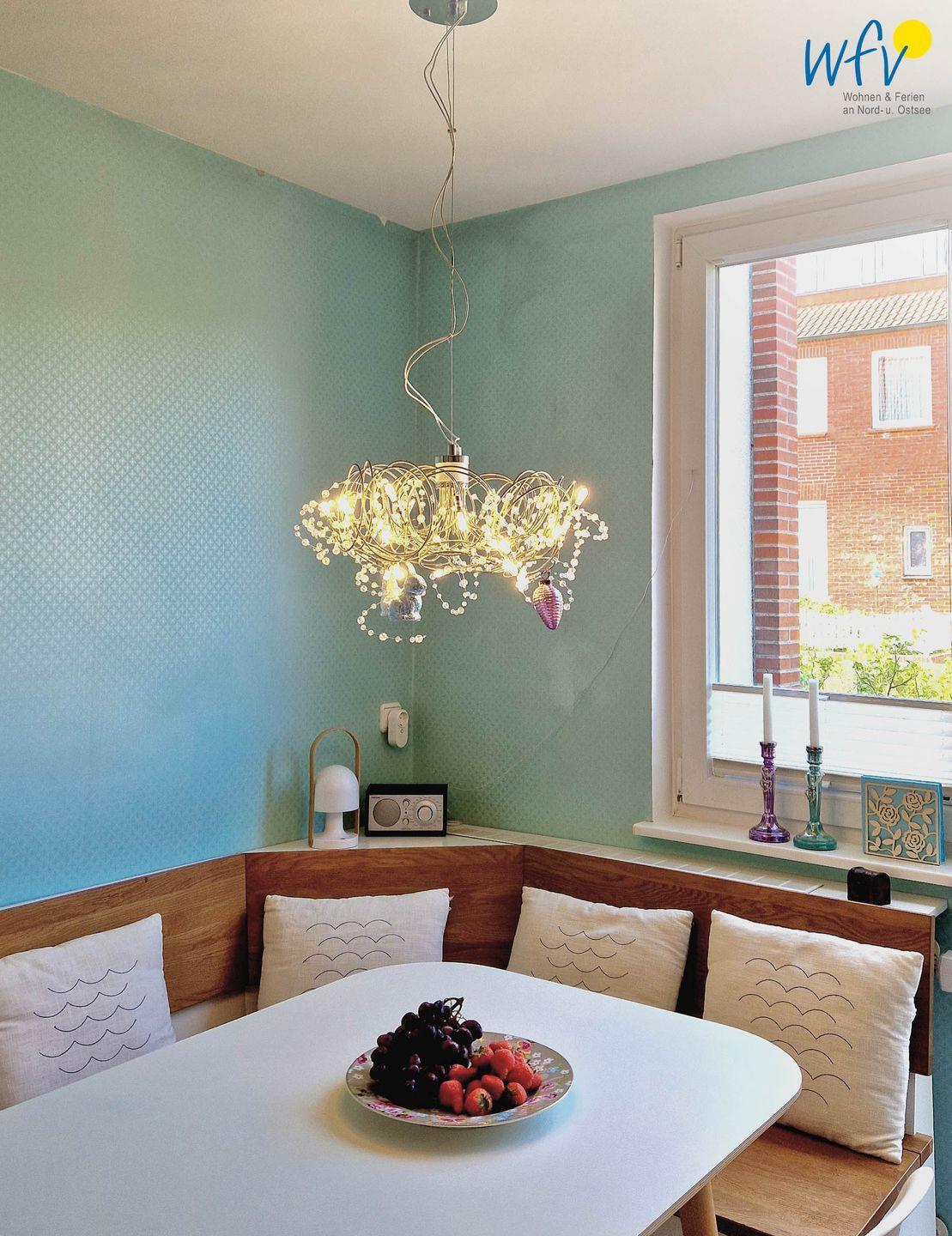 In der offenen modernen Küche lassen sich schnell und einfach leckere Gerichte zaubern. Während auf dem Induktionsherd der frische Fisch in der Pfanne brutzelt, bräunen im Backofen die Rosmarinkartoffeln. Zum Dessert können Kaffeegourmets zwischen einer klassischen Kaffeemaschine und einem DeLonghi-Vollautomaten (mit Kapseln) wählen. Den Abwasch übernimmt für Sie der Geschirrspüler. Auf der Eckbank mit großem Esstisch können Sie gemütlich beisammen sitzen, klönen, Mahlzeiten genießen oder gesellige Spieleabende verbringen.