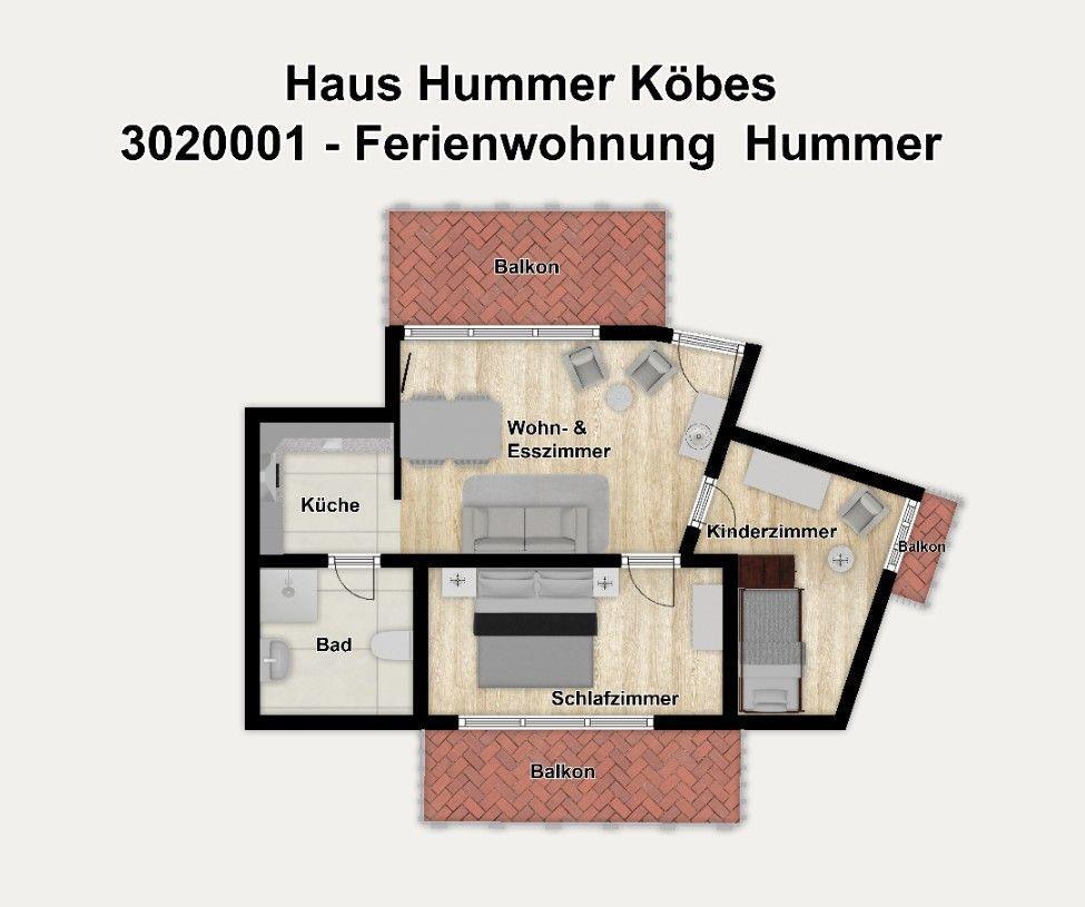 Genießen Sie Ihre Ferien in bester Lage und mit erstklassigem Komfort. Unsere hochwertige und moderne "Ferienwohnung Hummer" im "Haus Hummer Köbes" lädt zu herrlich erholsamen Urlaubstagen ein. Nur wenige Minuten zu Fuß und schon sind Sie am Strand und an der Promenade! Mit Platz für bis zu 6 Personen, zwei separaten Schlafzimmern und drei Balkonen ist die Unterkunft ideal für Ferien mit der Familie oder mit Freunden.