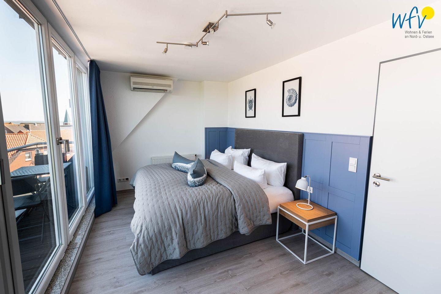 Luxuriöse Ferienwohnung Hummer auf Juist mit drei Balkonen, WLAN und Klimaanlage, nur wenige Minuten vom Nordseestrand entfernt.