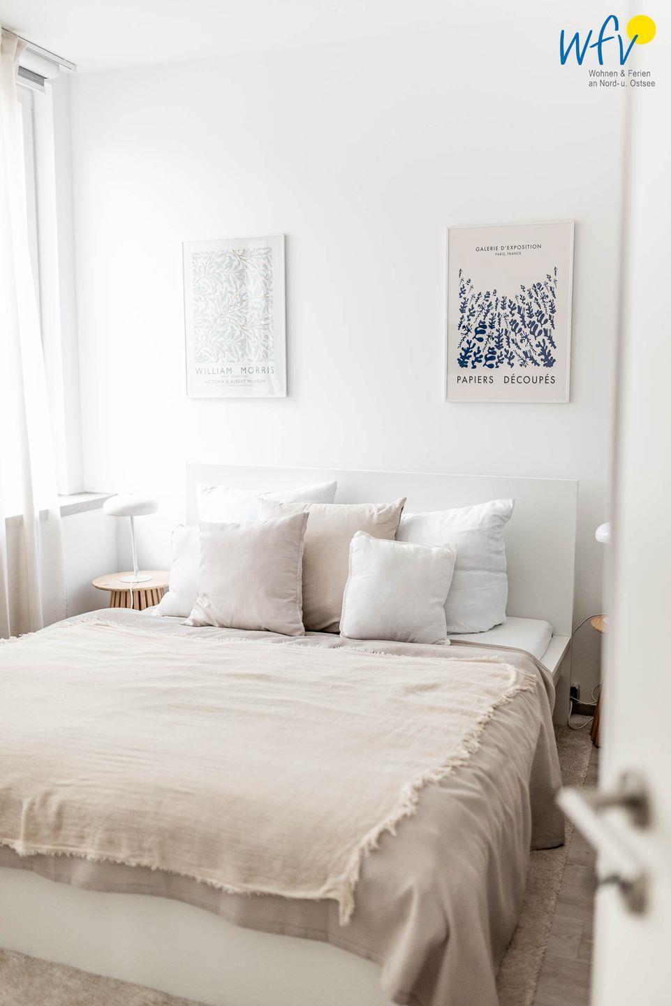 Wenn auf Juist die Sonne untergeht, der Letzte den Strand verlassen hat und es Zeit zum Ruhen wird, können Sie sich in dem separaten Schlafzimmer erholen. Eingerichtet ist es mit einem komfortablen Doppelbett (200 cm x 165 cm). Zum gemütlichen Fernsehen steht Ihnen auch hier ein TV zur Verfügung.