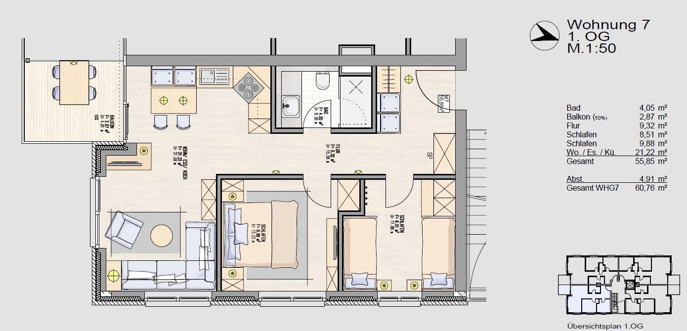 Wohnfläche 60 m²