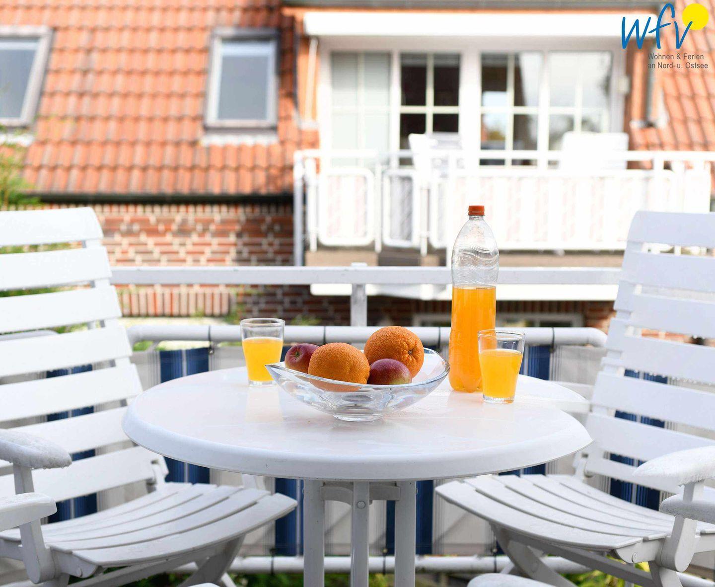 Von der Essecke aus gelangen Sie direkt auf den möblierten Balkon (Nordseite), der Ihnen bis zum späten Vormittag und ab dem frühen Abend sonnige Verwöhnmomente garantiert! Ideal, um an der frischen Nordseeluft in vollen Zügen zu relaxen und die Seele baumeln zu lassen...