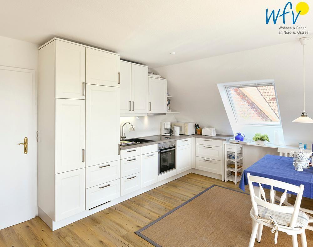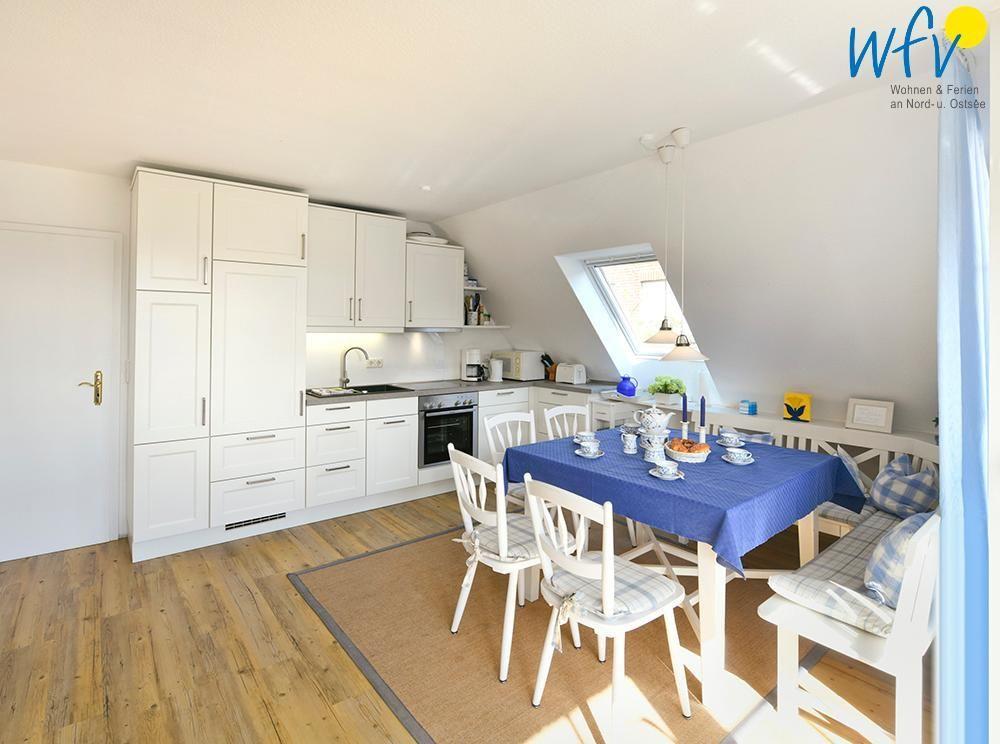Am großen Essplatz bekommen Sie bereits beim Frühstück Lust, einen neuen ereignisreichen Tag auf Juist zu planen! In der modernen Küche lassen sich prima gemeinsame Kochabende gestalten. Und herrlich relaxen können Sie im gemütlichen Wohnbereich, der mit einer bequemen Couch mit TV ausgestattet ist. Zwei Korbsessel am Fenster laden zudem zu entspannten Lesestunden ein.