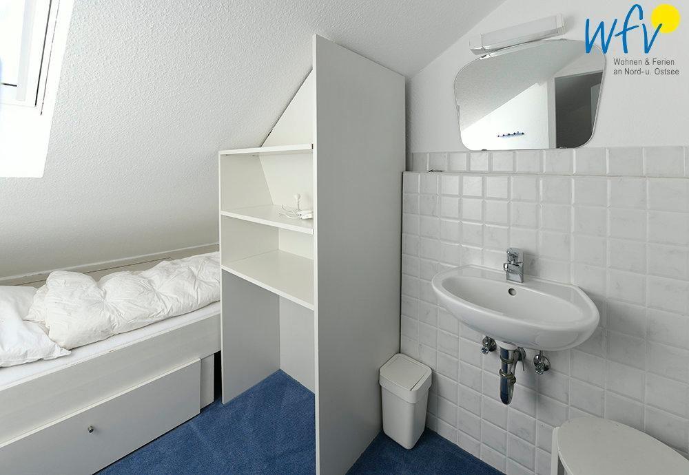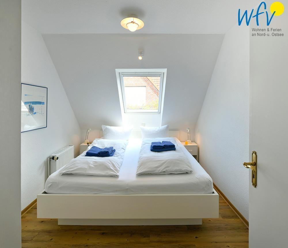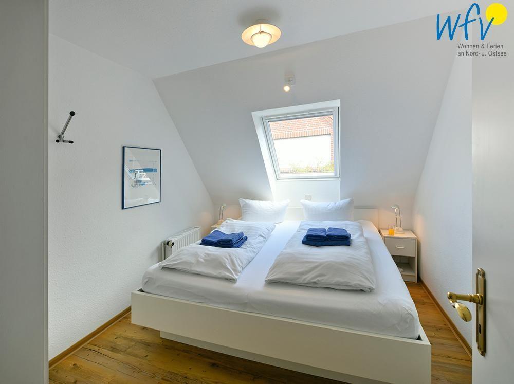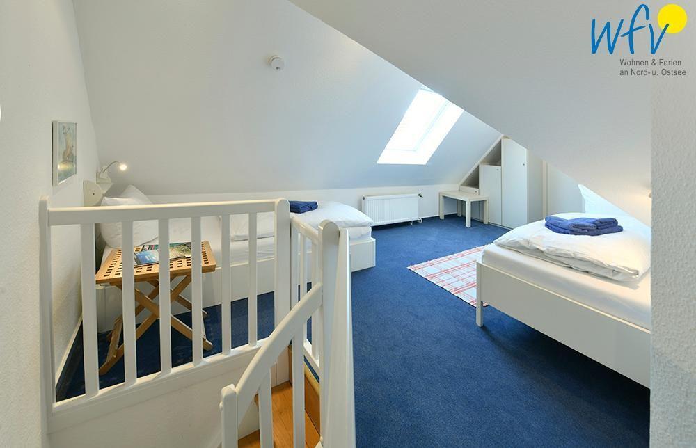 Im Obergeschoss erwarten Sie ein großzügiger Wohnraum mit integrierter Küche und Essbereich, ein separates Schlafzimmer mit Doppelbett (180 x 200 cm), ein Duschbad und eine sonnige Terrasse. Im Dachgeschoss befindet sich das zweite separate Schlafzimmer mit zwei Einzelbetten (90 x 200 cm) sowie ein weiteres Einzelbett in einer kleinen Kammer.
