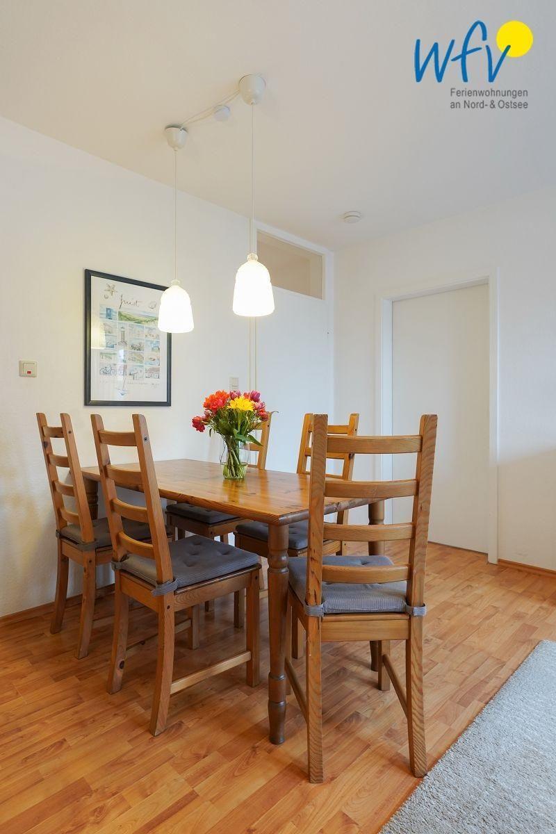 Im Wohnraum befindet sich zusätzlich ein Essbereich mit einem großem Esstisch. In der separaten Küche lassen sich auch im Urlaub leckere Gerichte zaubern. Sie ist u.a. mit Herd, Backofen, Spülmaschine und Kaffeemaschine ausgestattet.