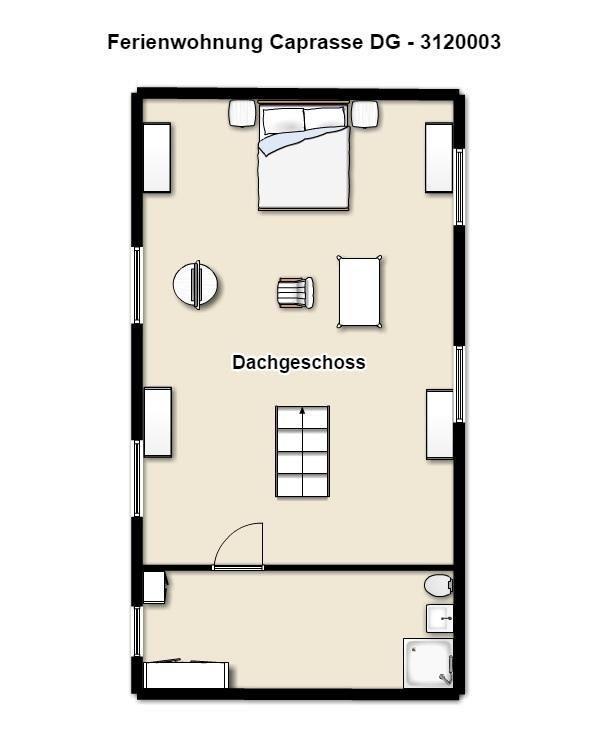Unsere großzügige Ferienwohnung „Caprasse“ mit drei separaten Schlafzimmern und wunderbarem Südbalkon bietet Ihnen Platz für bis zu sechs Personen.