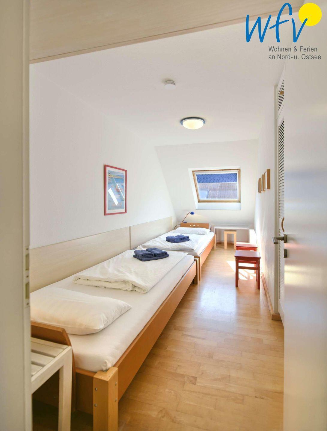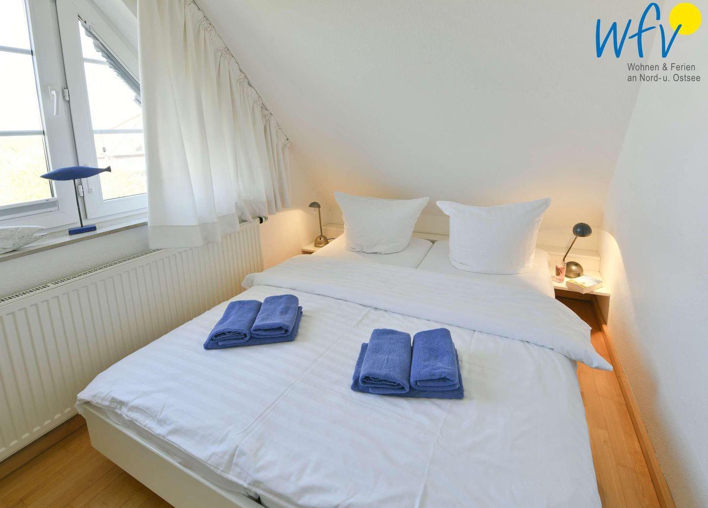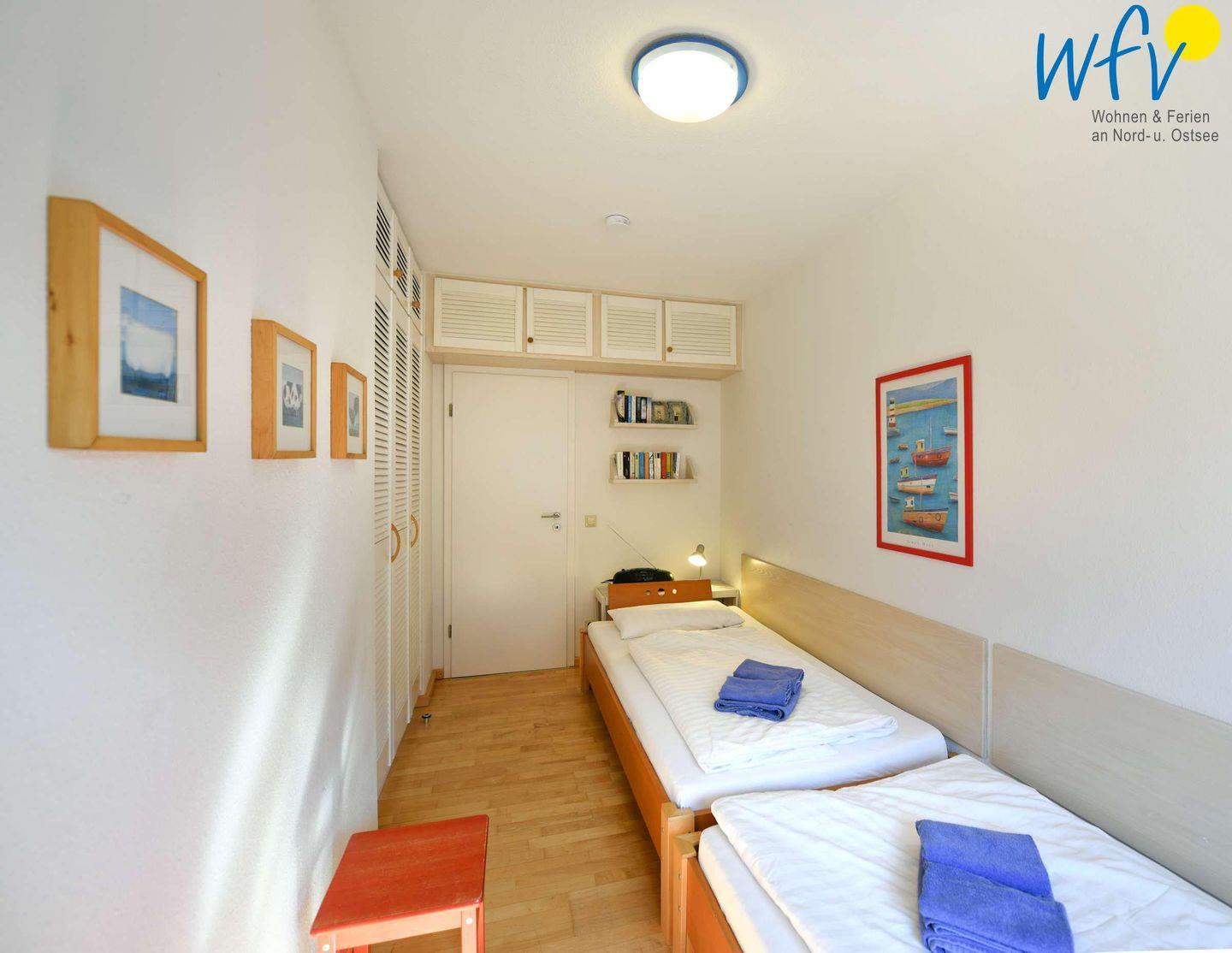 Die zwei separaten Schlafzimmer sind mit einem Doppelbett bzw. zwei Einzelbetten ausgestattet. Geräumige Kleiderschränke bieten Platz für Ihre Urlaubsgarderobe.