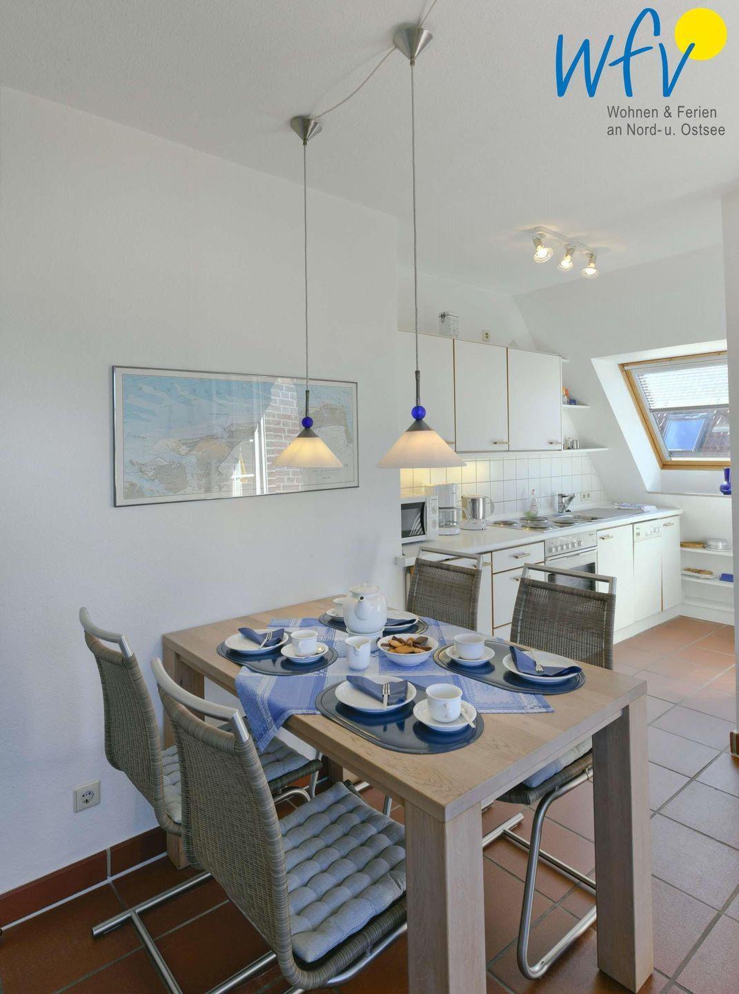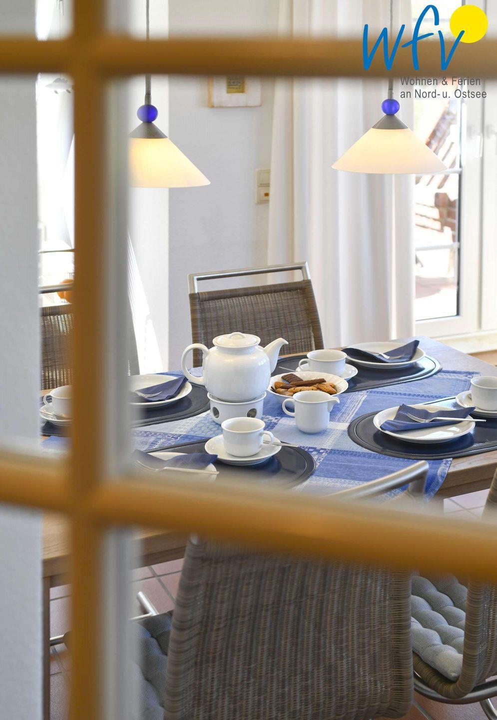 Der schöne Essbereich lässt Sie gut gelaunt in den Urlaubstag starten. Bei warmen Frühstückbrötchen können Sie hier wunderbar die Fahrradtour oder den Strandtag auf Juist planen. Zu gemütlichen Abenden lädt die bequeme Couchecke mit TV ein. Zum Surfen vom Smartphone aus empfangen Sie kostenlos freies WLAN.
