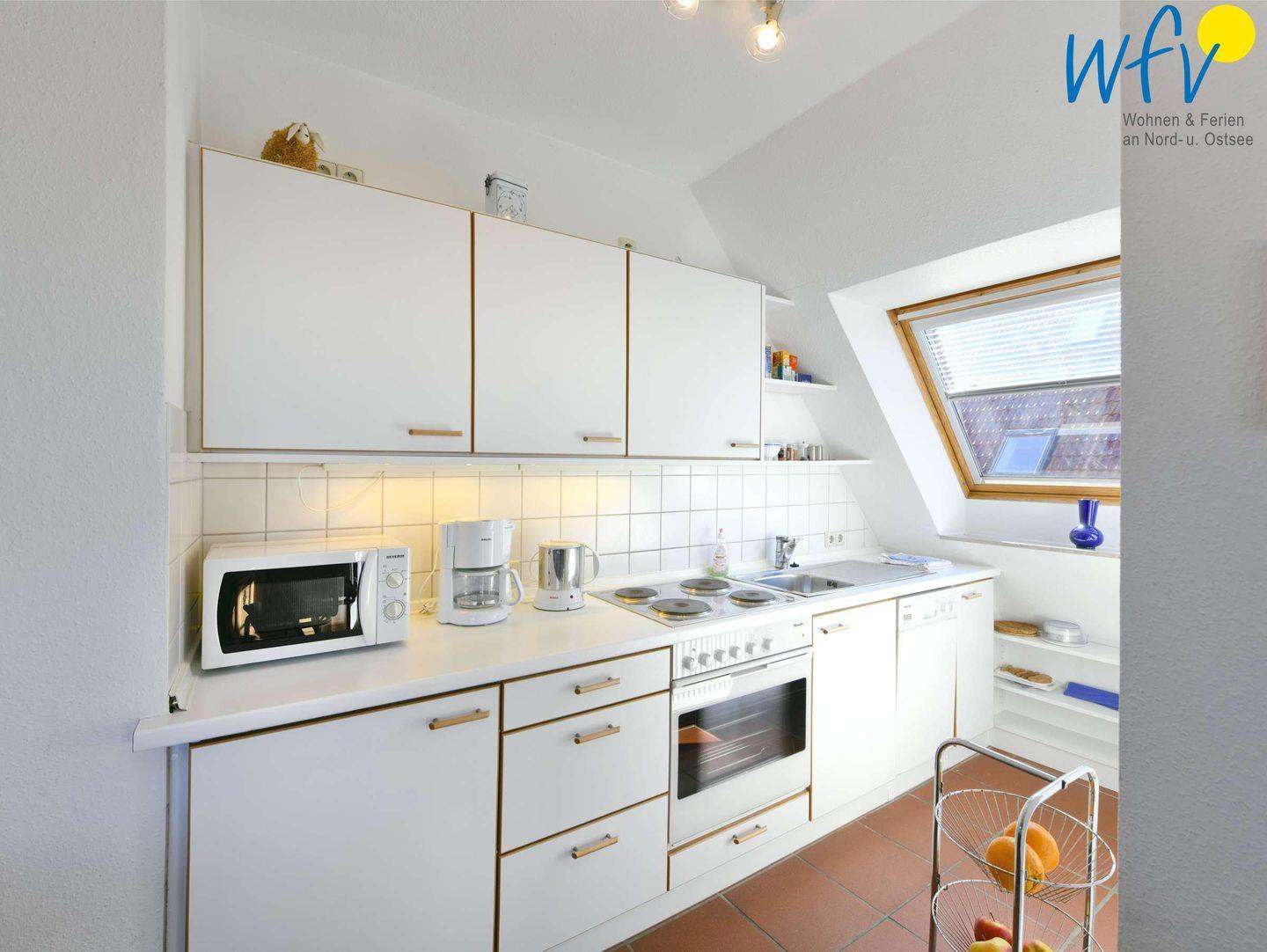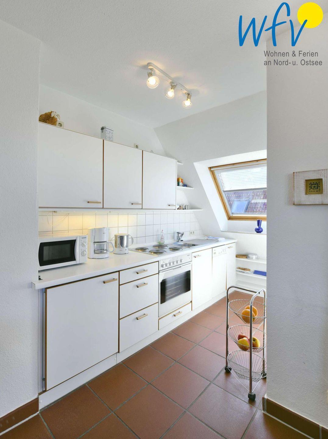 Für eine angenehme Selbstverpflegung verfügt die gut ausgestattete Einbauküche u.a. über einen 4-Plattenherd mit Backofen und eine Spülmaschine.