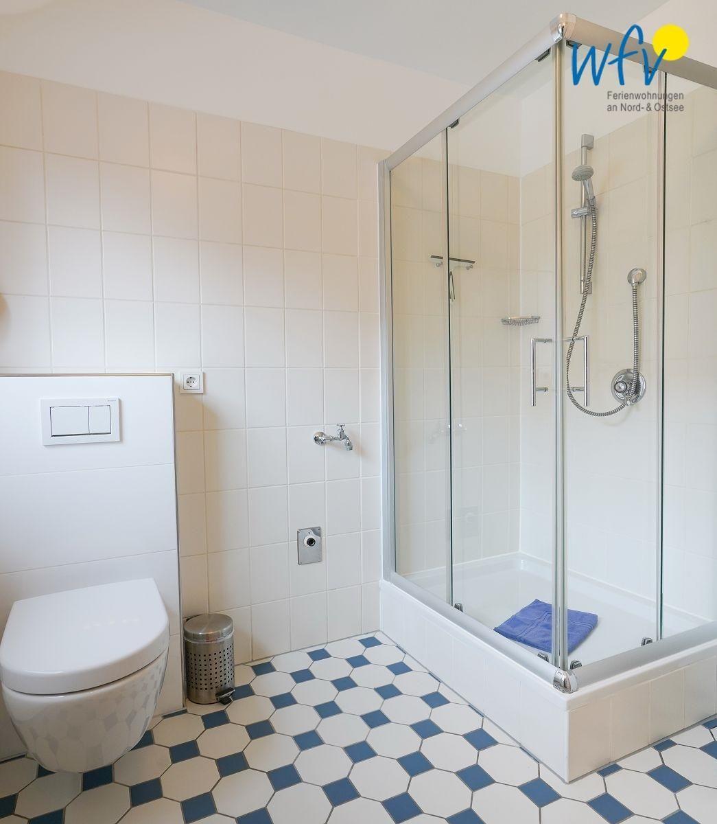 Das geräumige Badezimmer mit Dusche und Fußbodenheizung komplettiert den Wohnkomfort.