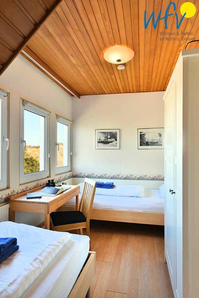 Das separate Schlafzimmer ist mit zwei gemütlichen Einzelbetten ausgestattet. Im Wohn-/ Esszimmer bietet ein Schlafsofa eine weitere Schlafmöglichkeit.
