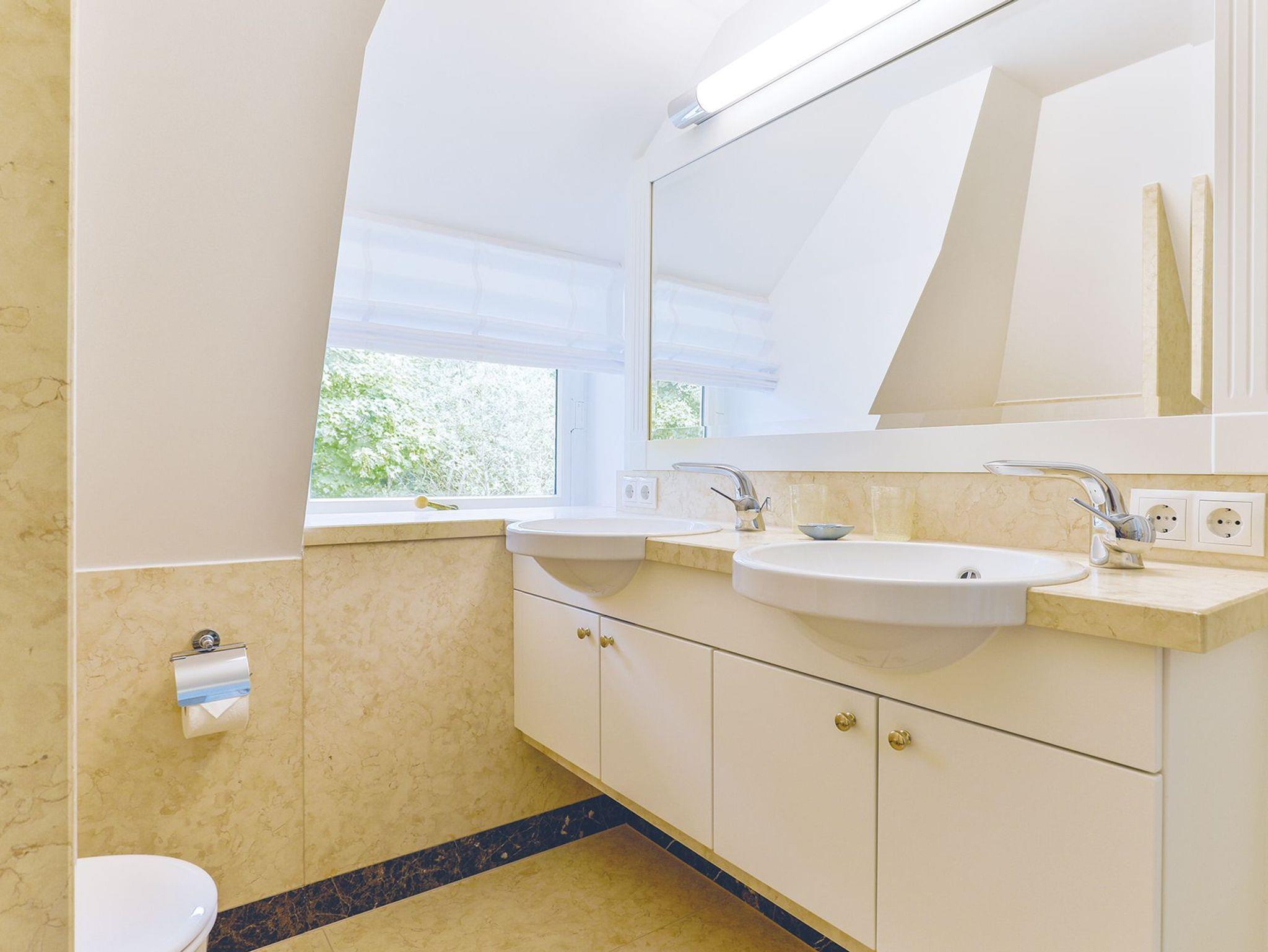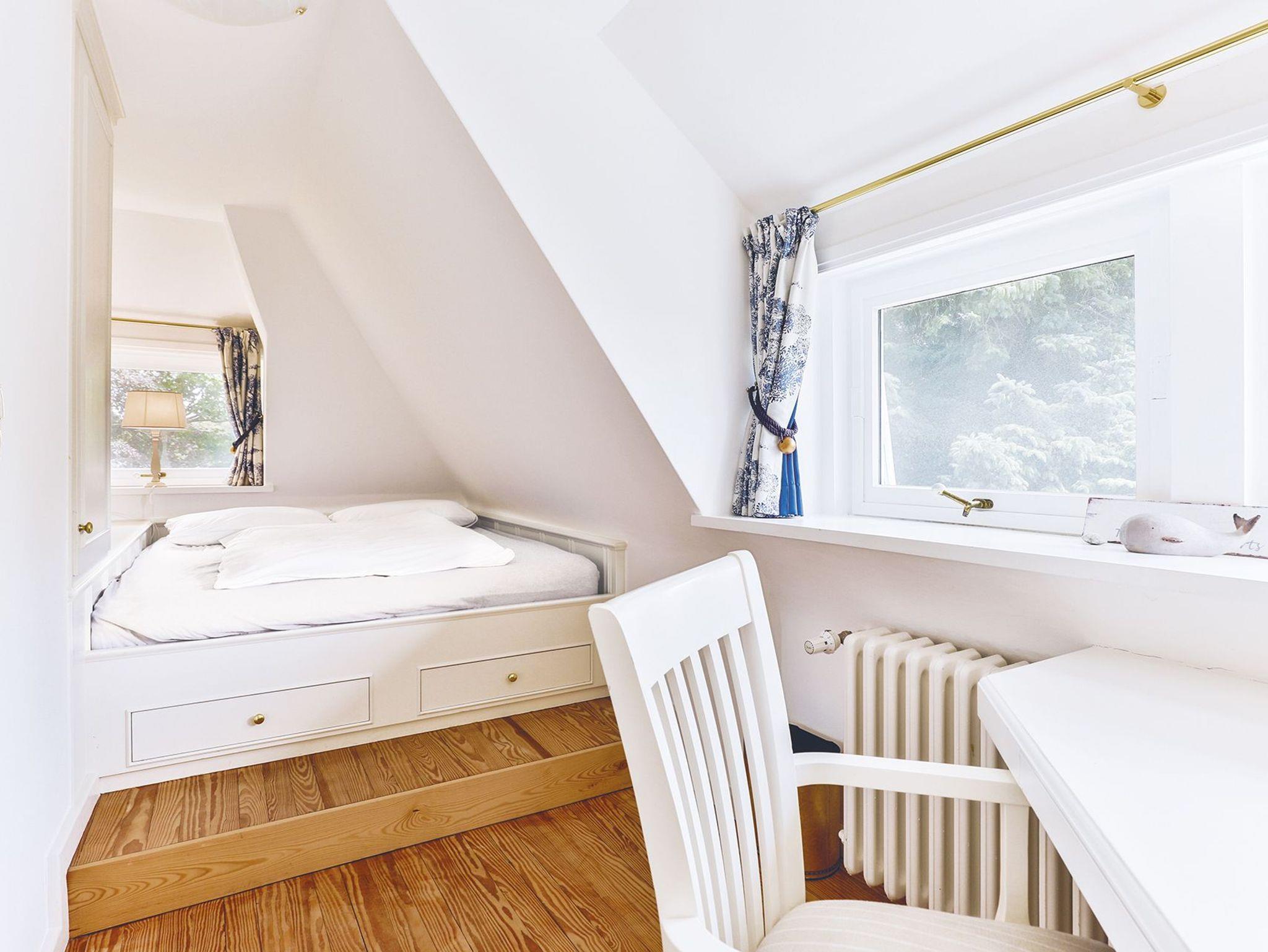 Dieses Einzelhaus unter Reet in exklusiver Lage ist ein echtes Schmuckstück. Der wunderbar, eingewachsene Garten strahlt Ruhe und Erholung aus. Das Erdgeschoss bietet ein zauberhaftes Wohnzimmer mit gemütlichem Essbereich am Kamin und TV, sowie eine offene Küche, von der aus Sie auf Ihre SüdOstterasse gelangen. Ein Gäste-WC finden Sie ebenfalls auf dieser Ebene. Im Obergeschoss erwarten Sie zwei Einzelschlafzimmer und ein Doppelzimmer, alle mit gemütlichen Kojenbetten, sowie ein kompaktes Duschbad mit Doppelwaschtisch. Im Untergeschoss gibt es ein weiteres Doppelschlafzimmer, samt modernem Duschbad mit Doppelwaschtisch und eine eigene Sauna für bis zu vier Personen. Das gesamte Haus ist mit hochwertigem Holzfußboden und hellen Fliesen ausgelegt.