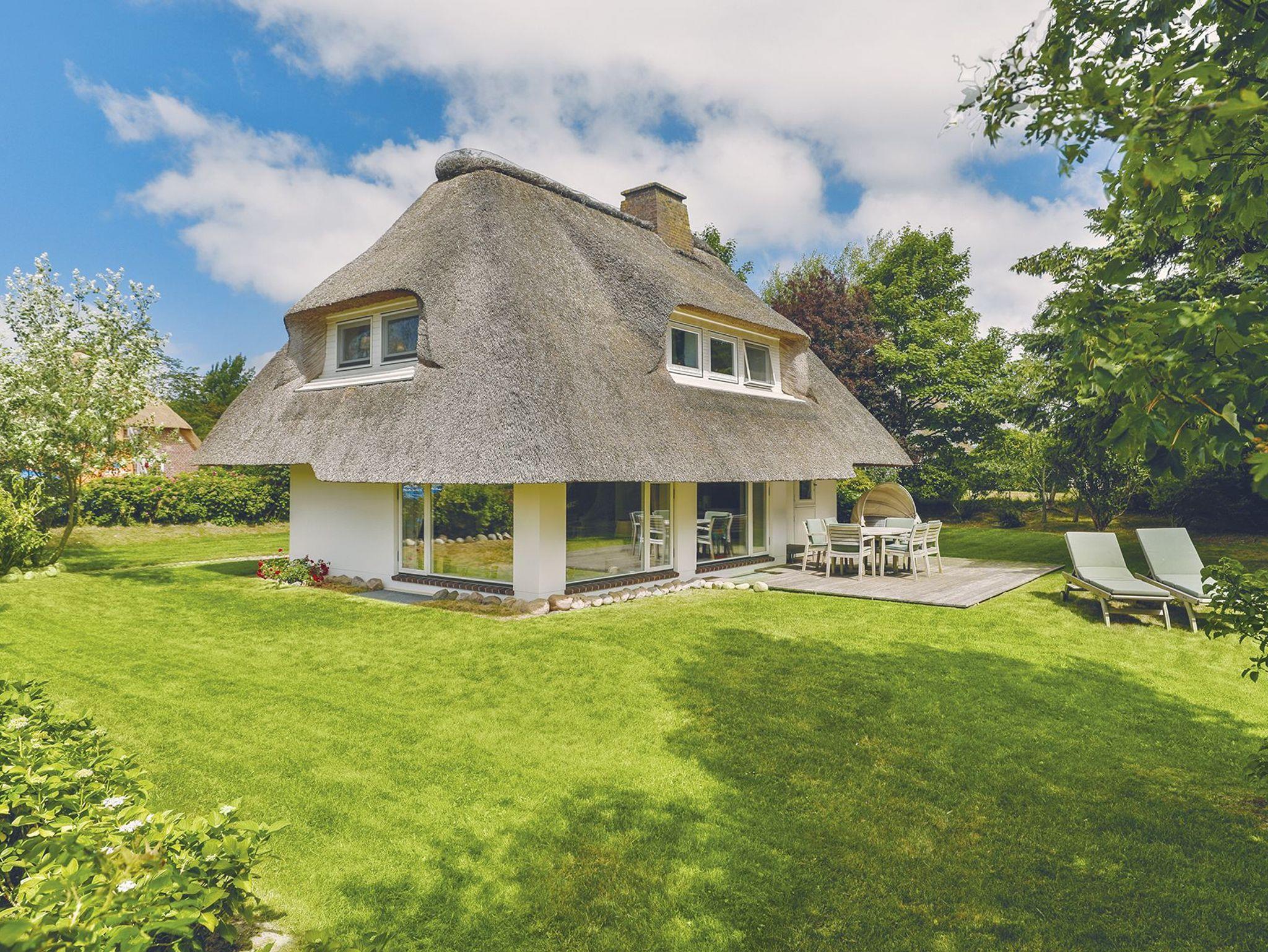 Exklusives Reetdachhaus in Kampen auf Sylt mit Sauna, Kamin und eingewachsenem Garten für erholsame Tage.