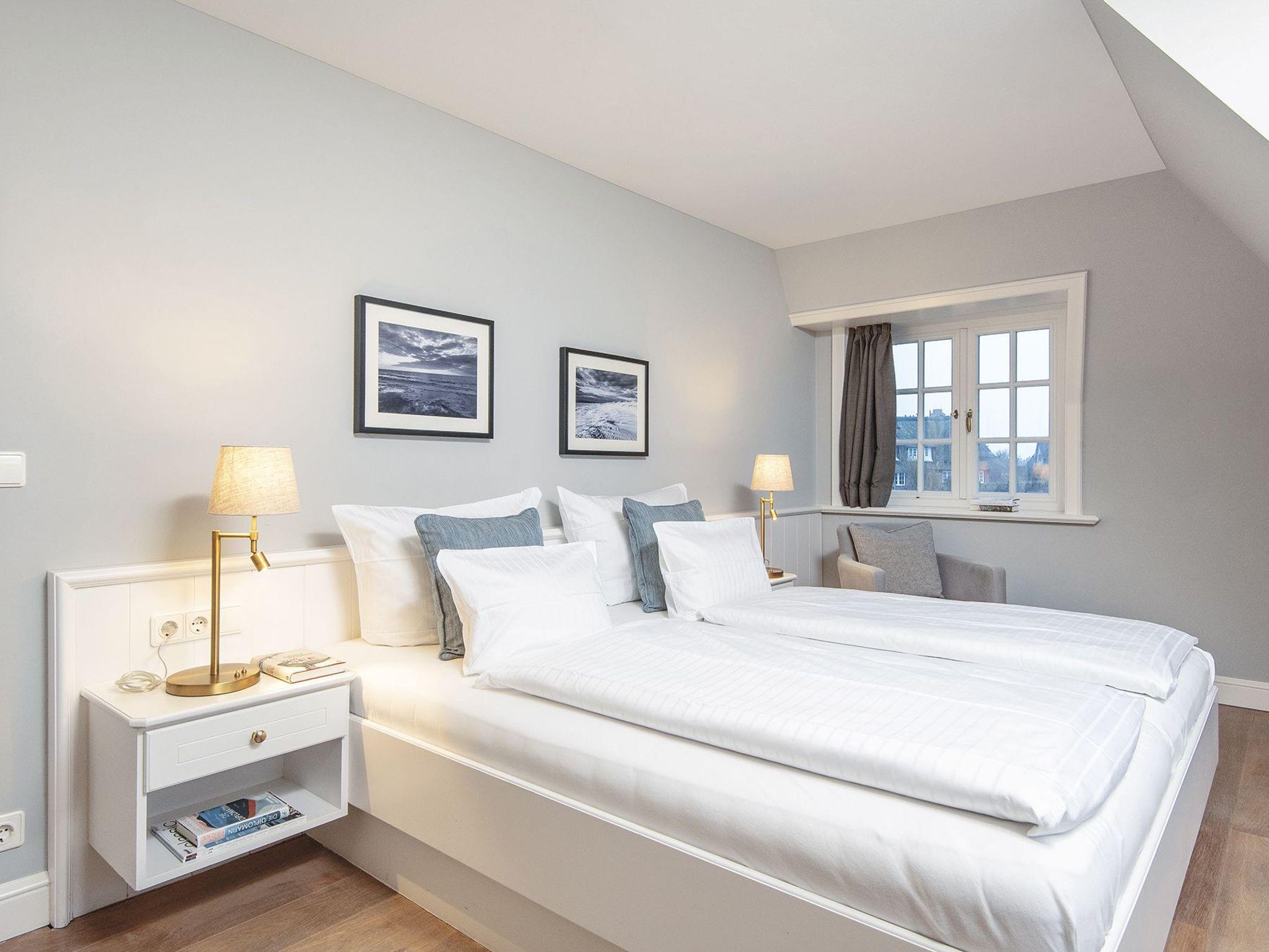 Platz für bis zu 6 Personen und viel Wohnqualität, bietet das vierte Hausteil des Prahl Hüs. Elegante Holzfußböden, Tischlereinbauten, ein Kamin und gehobene Ausstattung gehören hier zum Standard. Gekocht wird in einer perfekt ausgestatteten offenen Küche. Im Ober- und Untergeschoss gibt es jeweils ein Einzel- und ein Doppelzimmer. Das elegante Bad im Untergeschoss besitzt Wanne und Dusche. Oben wartet ein modernes Duschbad auf Sie, parterre ist zusätzlich ein Gäste-WC. Die Südterrasse im offenen Gartenteil wartet mit einem eigenen Strandkorb auf. Für das Wohlgefühl sorgt die hauseigene Sauna- Dampfbad- Oase, die allen Gästen des Prahl Hüs zur Verfügung steht.