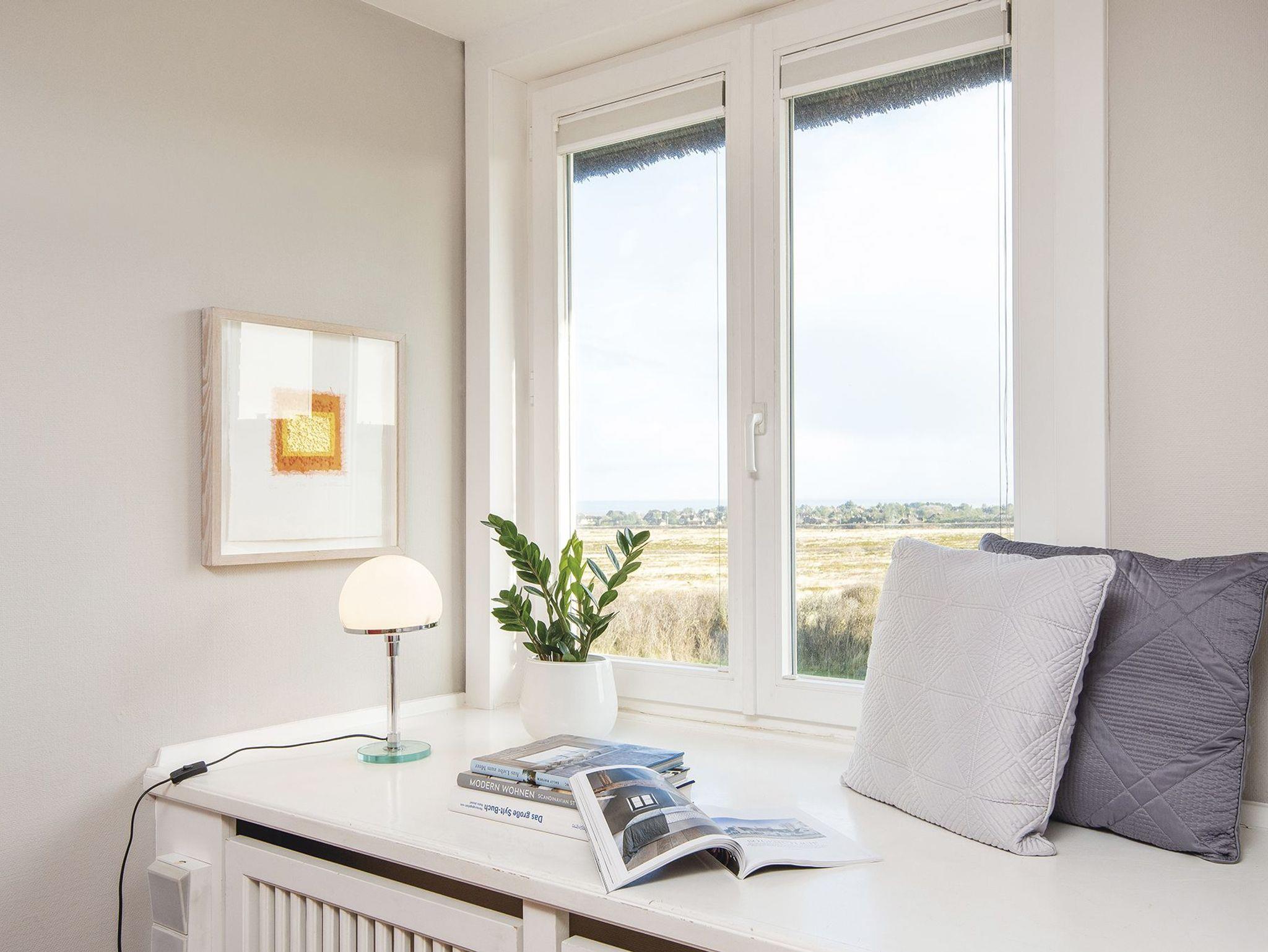 Schlafen unter Reet direkt am Roten Kliff - näher am Strand geht kaum! Dieses kleine, aber feine Ferienquartier für Zwei besticht aus dem 1. Obergeschoss mit einem wundervollen Blick über die Heide bis hin zum Wattenmeer. Es begrüßt Sie ein heller Wohnraum mit modernen Möbeln und zwei Einzelbetten. Der Einbauschrank bietet viel Stauraum, der Lesesessel sorgt für Gemütlichkeit. Die hübsche Essecke erlaubt sogar einen Gast. Die Küchenzeile ist separat untergebracht. Ein modernes Duschbad macht das Quartier perfekt. Im Garten befindet sich der zum Quartier gehörige Strandkorb, hier dürfen Sie sich entspannt zurücklehnen und die Sonne genießen.